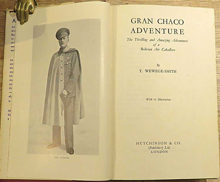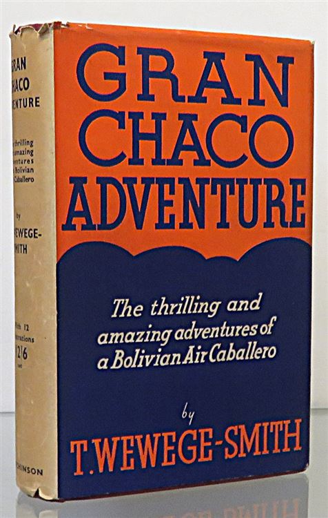 Hardback. T. Wewege-Smiths' 1937 firsthand account of The Chaco War between 1932 and 1935 between Bolivia and Paraguay. A first edition, complete with dust jacket, with burgundy cloth boards underneath. Illustrated with numerous black and white photographic plates. Overall a very good copy of a scarce title. The dust jacket has a bright and clean front cover although there is a little toning to the spine with chipping to the top and base. Minor edge wear to the rear. Not price clipped. The binding is in very good condition despite a little bumping to the base of the spine. Foxing along the fore-edge with a litle foxing to the page margins. The pages, however are generally clean throughout. pp. 288 +16. This book covers the brutal, largely forgotten conflict fought over the arid, resource-rich Chaco Boreal region. Written from the viewpoint of a foreign mercenary or adventurer working as a pilot for the Bolivian side.