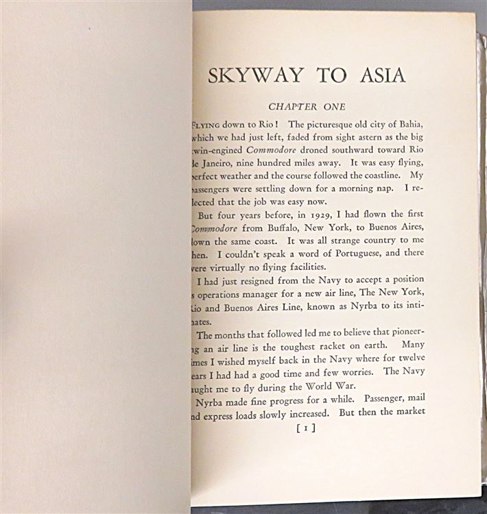 Hardback. First Edition with a large inscription signed by the author to the half title page. This book chronicles the pioneering 1935 North Haven expedition, which established the first commercial air route across the Pacific Ocean. Detailing the challenges of building, equipping and operating remote air bases across the Pacific to enable Trans-Pacific air travel. A good copy, despite a worn dust jacket, with tape repair to the underside. The red cloth boards have faded, especially to the base of the spine.Internally there is surface wear and a little discolouration to the end-papers. The rest of the pages are very clean, illustrated with several black and white photographic images, including frontispiece. pp. x + 205. A must for any aviation fan.