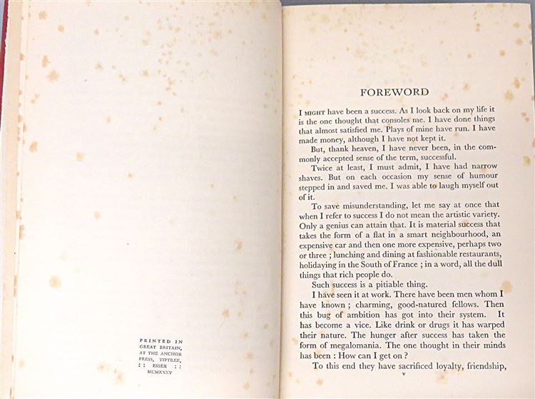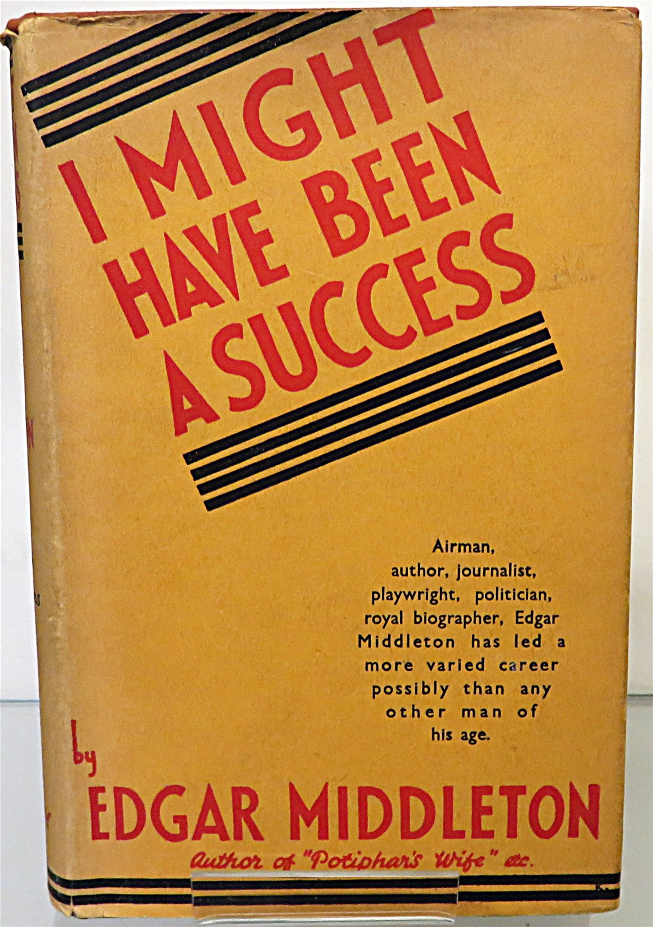 St Mary's Books is proud to present this lovely 1935 edition of "I might have been a success" by Edgar Middleton. Housed in its original orange dustjacket featuring black and red ink lettering, this hardback book is bound in burnt orange cloth with gold gilt lettering to the spine. Inside, one finds i-ix and 287 pages of text, supplemented with stunning black and white photographs, such as the one on the frontispiece depicting the author among the ruins at Ypres Square. This tale of a life of adventure is in good condition, the dustjacket is remarkably well-preserved and thus can be described as very good, however there is significant foxing throughout this copy - all of which is more than fair considering the age and rarity of this edition. "I might have been a success" is looking for a new home, and would make for the perfect gift for any lovers of thrilling and varied autobiographies.
