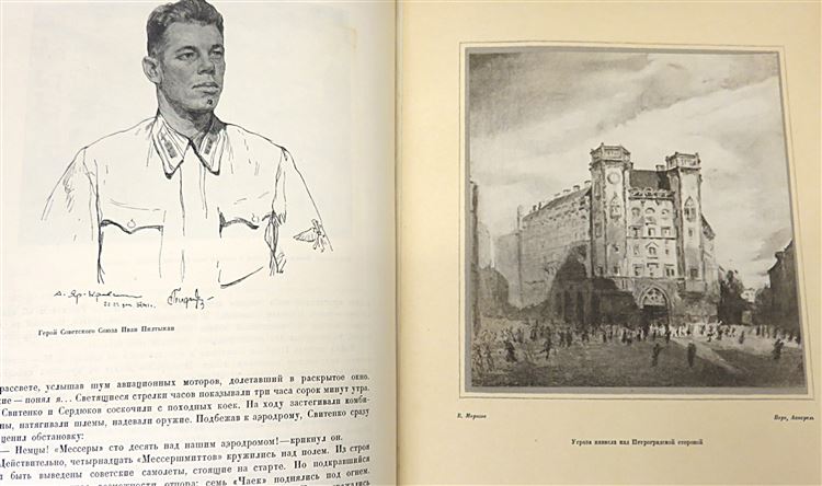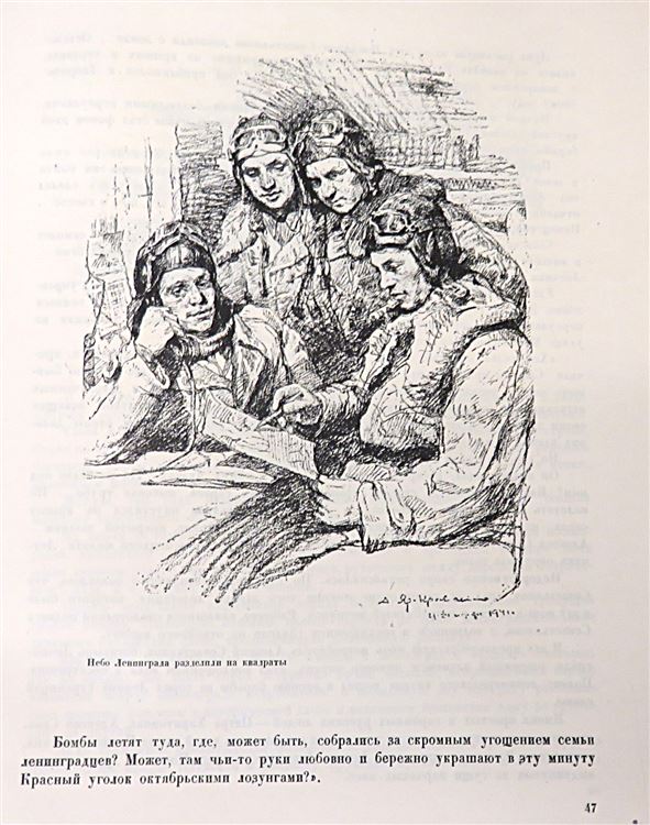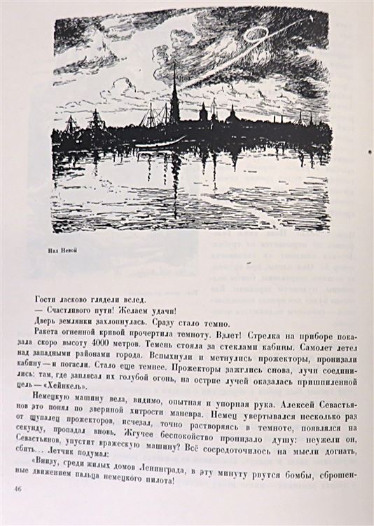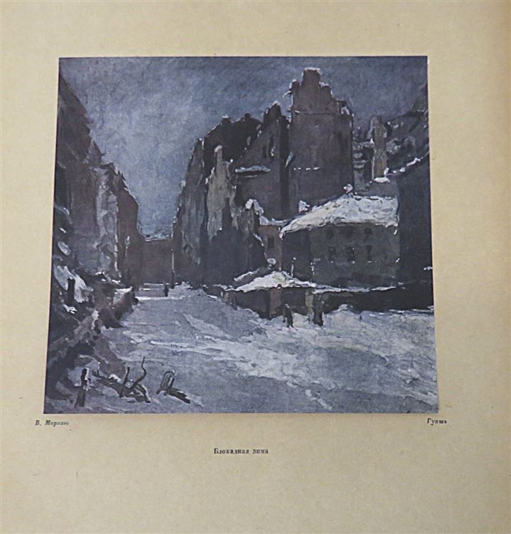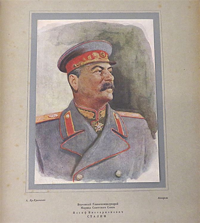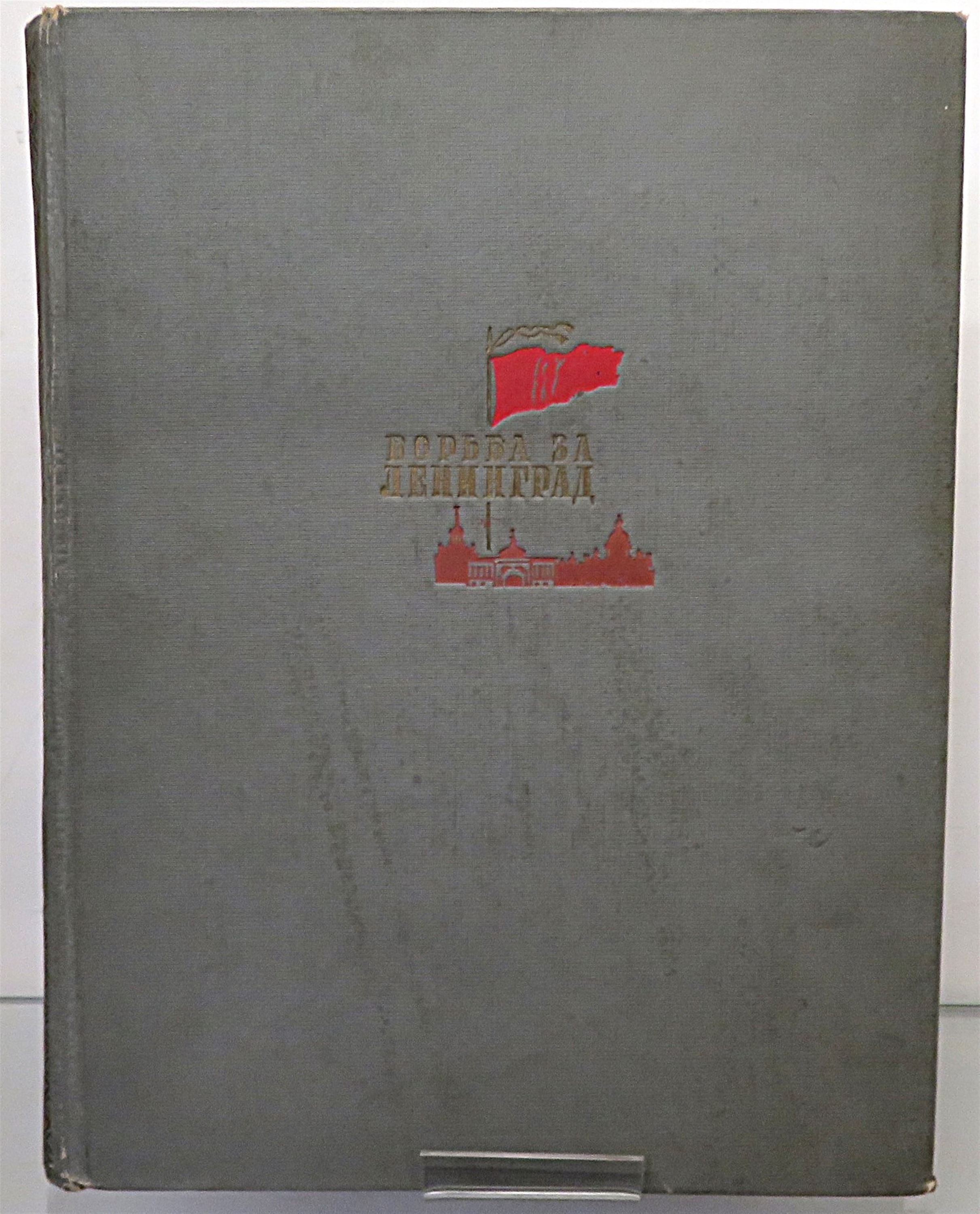 St Mary's Books is proud to present this 1944 state edition of "Fight for Leningrad: Pilots", with illustrations by Anatol Jar-Kravtschenko and Victor Morozoff and text by Bor. Brodyansky. This hardback book is bound in grey cloth, with intricate red ink and gold gilt illustrations on the cover and spine, such as the silhouette of Leningrad on the cover, and the red star pattern on the spine. Inside, one finds beautifully presented title pages in English and in Russian Cyrillic script, followed by portraits of Stalin and another Soviet leader. After which, one is treated to 224 pages of Russian Cyrillic text, supplemented by stunning black ink and full colour illustrations, recalling the battle for Leningrad from multiple perspectives. This wonderful slice of history is in very good condition - other than some minor stains and some bumping to the cover, the book is in remarkably good condition considering its age and rarity, with few other noticeable blemishes. "Fight for Leningrad: Pilots" is looking for a new home, and would make for the perfect gift for any Soviet historian, aviation enthusiast, or art lover.