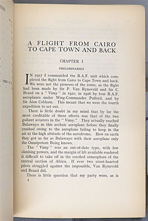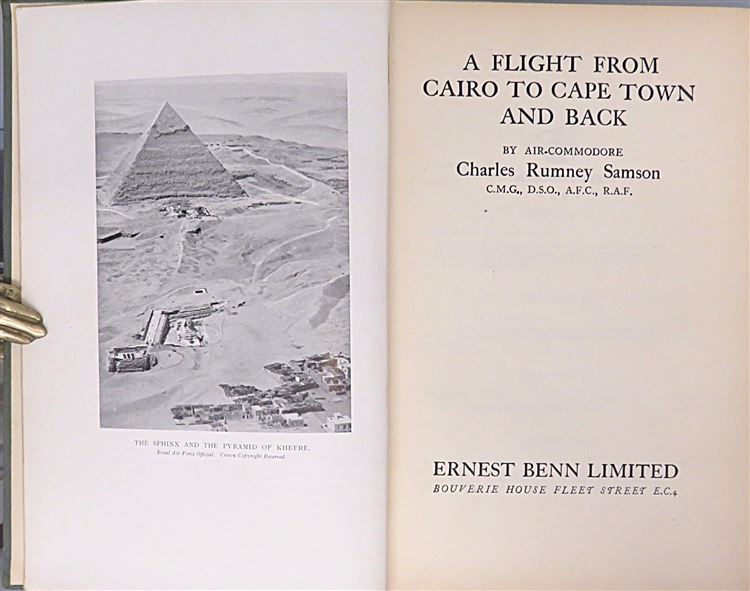 Hardback. First Edition. This book chronicles a pioneering 12,000 mile round trip journey across Africa. Detailing the challenges, mechanical failures and the varied terrain encountered by the Royal Air Force squadron, led by Air Commodore Samson, paving the way for future aerial routes. Bound in the publisher's original green cloth, this copy is in good condition despite a little fading to the spine and edge bumping. The pages within are lightly toned although clean, small ex-libris label to the front paste down. pp. x + 196. Illustrated with several black and white photographic plates and a folding map to the rear. A must for any aviation enthusiast.