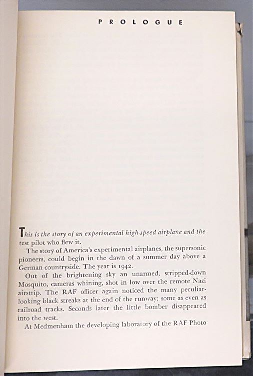 Hardback. The Fourth Printing of this fascinating story of William Bridgeman's story of America's experimental high-speed airplanes. With inscription from the author to the front free endpaper. Complete with a pictorial dust jacket which is clean and bright, however, there is wear and closed tears to the extremities with minor chipping to the top and base of the spine. Underneath lie cloth boards which are lightly discoloured along the outer hinges although clean and in good condition. The pages are clean and illustrated with a few black and white photographic plates. pp. 316. Overall a fascinating title, scarce with signature.
