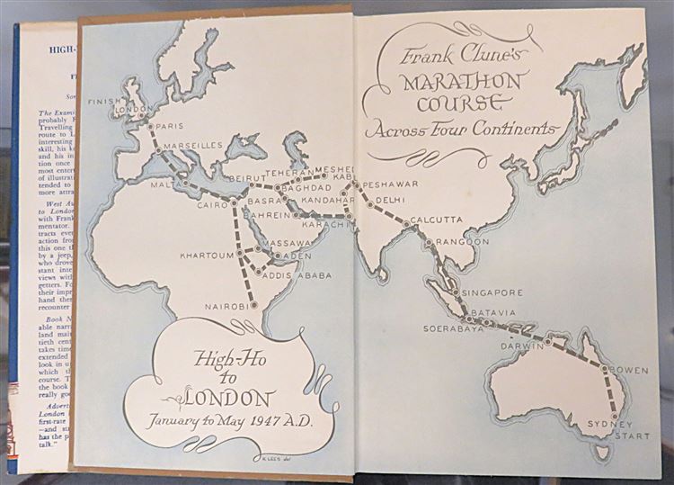 Hardback. A Signed First Edition of Frank Clune's travelogue documenting his 1947 journey from Sydney to London. This copy is complete with a pictorial dust jacket which despite a little edge wear is bright and clean. Unclipped. The brown cloth boards underneath show a little edge wear although still present well. There is a large inscription signed by the author to the half title page, together with the author's ink stamp. The pages throughout appear unread and illustrated with several diagrams and photographic plates. pp. xvii + 257. Overall a very good copy.