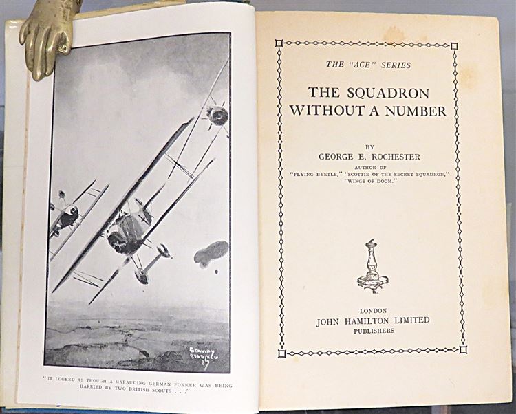 Hardback. No Date presumed First Edition. The Ace Series. Another thrilling adventure of Scotty of the Secret Squadron. The pictorial dust jacket which has been covered in a clear adhesive wrap, is worn to the extremities with fading to the spine. The blue cloth boards present well, however there is some paper residue to the rear. There is a small neat article on MR. G.E. Rochester to the front free endpaper together with a small white label. The rest of the pages are clean despite toning and the occasional spot of foxing. Illustrated with several black and white photographic plates. pp. 223. Overall a good copy of a scarce title.