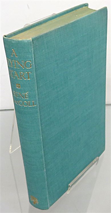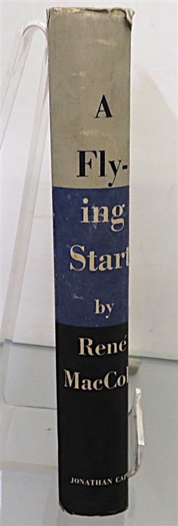 This lovely 1939 first edition of "A Flying Start: A Memory of the Nineteen Twenties" by Rene MacColl is housed in its original grey, blue, and black striped dustjacket. Bound in vibrant green cloth with gold gilt lettering to the spine, this hardback book has 304 pages of text, and contains Mr MacColls reflections on his varied life experiences, from Fleet Street, to his work as a special correspondent in India, to his time as Van-Lear Black's secretary and travelling companion on his long flights. This copy is in very good condition - though the dustjacket is slightly torn and bumped and thus can only be described as good, the book itself remains clean, readable, and remarkably well preserved given its age and rarity. "A Flying Start" is looking for a new home, and would make for the perfect gift for any aviation or autobiography enthusiast.