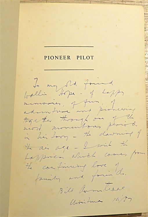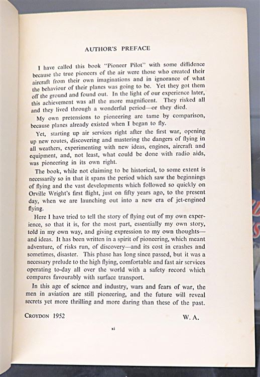 Hardback. First Edition with large inscription from the author to the half title page. The thrilling story of one of Britain's longest service pilots. Complete with a worn pictorial dust jacket with pieces missing to the extremities. There is a previous owner's inscription to the front free endpaper, while the rest of the pages are clean with just light foxing to the endpapers. Illustrated with several black and white photographic plates. pp. xi + 267. Overall a scarce copy with signature and dust jacket.