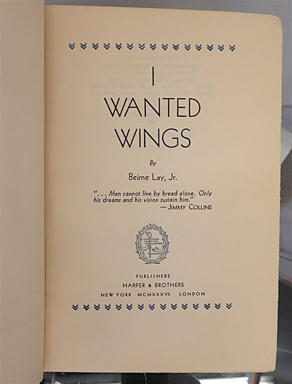 Hardback. A third edition of Beirne Lay's autobiographical account of his experiences as a Flying Cadet in the U.S. Army Air Corps in the 1930's. Complete with a large inscription signed by the author to the front free endpaper, dated June 9, 1937. Complete with a dust jacket this copy is in good condition despite wear and small pieces missing to the dust jacket. There is some paper repair underneath the dust jacket. The blue cloth boards are in good condition although lightly bumped to the edges with fading to the spine. Pictorial endpapers. The pages are toned although very clean throughout. Illustrated with several black and white photographic plates. pp. xi + 350. A scarce signed copy.
