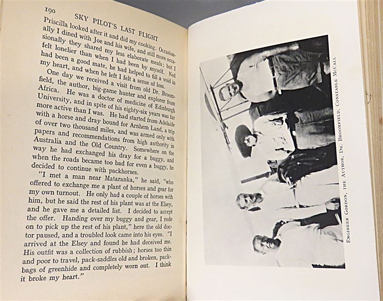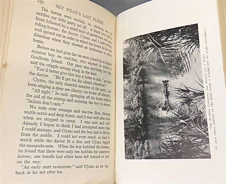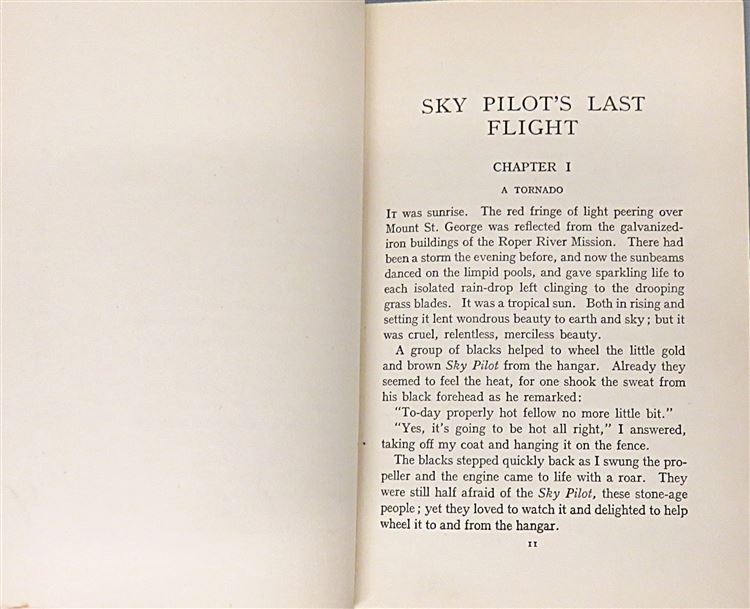 This lovely early edition of "Sky Pilot's Last Flight" the sequel to "Sky Pilot" by K. Langford Smith is now in the possession of St Mary's Books. Housed in a facsimilie (replica) dustjacket, this hardback book is bound in blue cloth with dark blue ink lettering on the spine. Inside, one finds i-vii, 255pp., and 38 pages of advertisements to the back of the book, supplemented with black and white photographs, such as the image on the frontispiece depicting the author next to "Sky Pilot", his aeroplane. In this book, the reader once again takes to the sky with the author in response to urgent calls for assistance. This book is in good condition, though thereis some wearing to the spine, some slight offsetting on the front free endpapers, and some minor foxing throughout - the text remains clean and readable. "Sky Pilot's Last Flight" is looking for a new home, and would make for the perfect gift for any aviation enthusiast.
