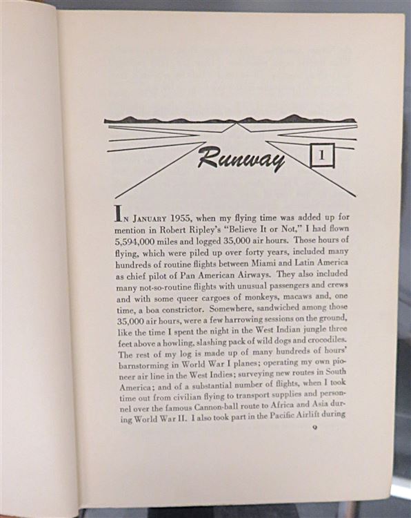 Hardback. First Edition. The adventurous autobiography of a great airline pilot from crates to clippers. Complete with a pictorial dust jacket, this is a good copy for an ex-library book. The pictorial dust jacket shows some edge wear with fading to the spine. Underneath the brown cloth boards have a little tape residue and a faded spine although present well. Book plate and faded ink stamp to the front endpapers with toning to the rear. There is light tape residue to the half title page and ink stamp to the title page. The rest of the pages are very clean despite the very occasional spot of foxing. pp. 256. Overall a good copy of a scarce title.