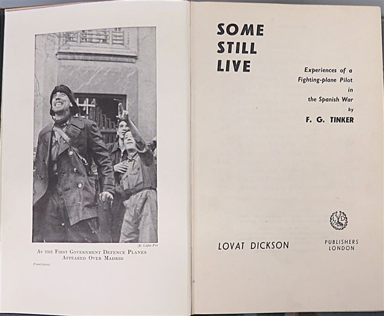 Hardback. First Edition. This book is a firsthand account by Frank G. Tinker, an American mercenary fighter pilot who flew for the Republican forces during The Spanish Civil War. It details his combat experiences and offers a gritty look at aerial combat, and the brutal reality of the conflict. This book is bound in black cloth with lettering in red to the front and spine. Maps to the endpapers and the occasional photographic plate. The binding is worn with a closed tear along the front hinge and light loss to the corners. Map of Spain to the endpapers with ink stamp and pen inscription to the front free endpaper with signature dated, 39 to the verso. The rest of the pages are lightly toned although clean throughout. pp. 284. Overall a fascinating account.