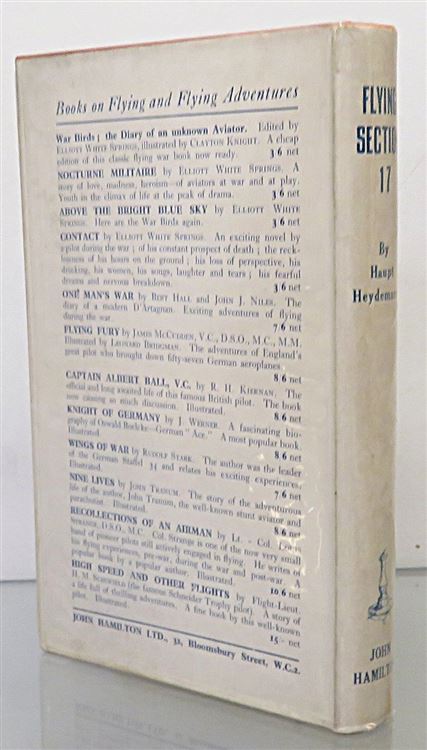 Hardback. Translated by Claud W. Sykes. Haupt Heydemarck's combat experiences as an observer with a 2 seater photo reconnaissance bomber squadron on the Western Front during 1915 and 1916. A very good copy with an unclipped pictorial dust jacket in a clean, bright condition. While underneath lie red cloth boards with black titles to the front and spine. There is some foxing to the prelims and rear endpapers with the occasional spot of foxing throughout, otherwise the pages are clean. Illustrated with several black and white photographic plates and line drawings throughout. pp. 178. A must for any aviation enthusiast.