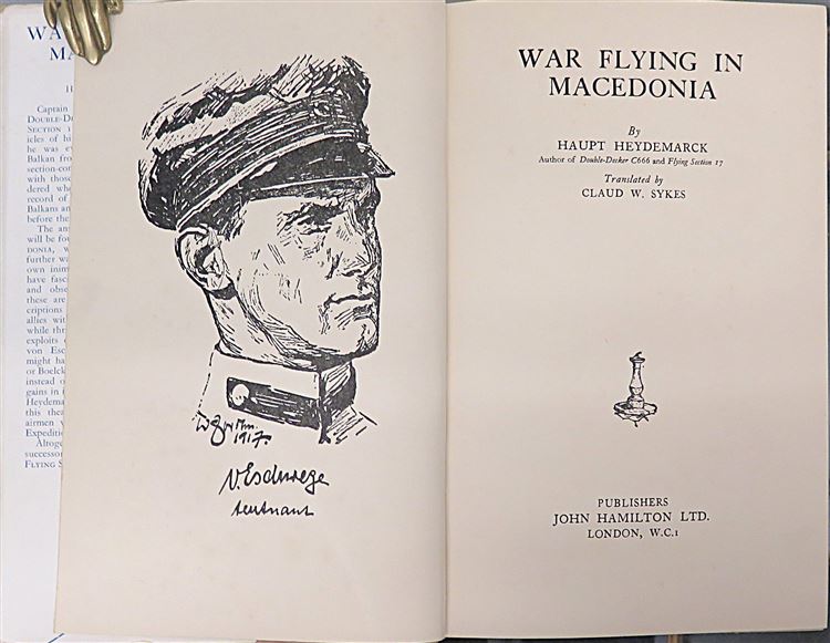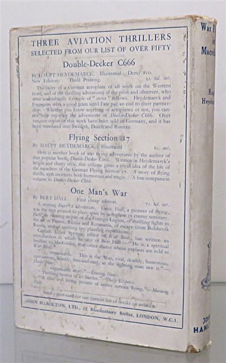 Hardback. This book is an account of the author's further war experiences recounted in his own intimitable style. This time on the Balkan front with Turkish and Bulgarian allies. The unclipped pictorial dust jacket is a little worn and chipped to the extremities. Underneath lie brown cloth boards with titles in black to the front and spine. The pages are illustrated by several black and white photographic plates, line drawings and a folding map to the rear. Overall a very good copy with no wear or fading to the binding and the very occasional spot of foxing to the pages. pp. 196. A must for any aviation enthusiast.
