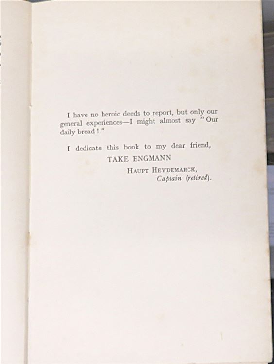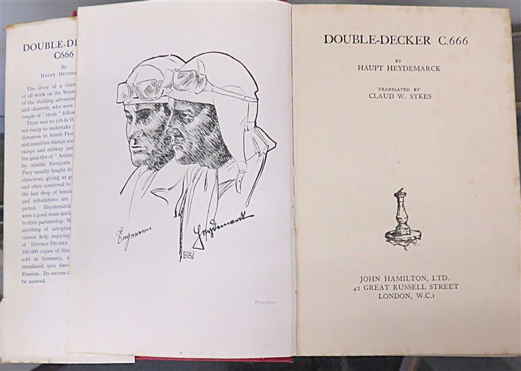 Hardback. Translated by Claud W. Sykes. Haupt Heydemarck account of flying with his pilot partner "Take" Engmann in the early days of combat flying giving a lively account of the often hair raising incidents that happened, such as freezing bombs caught in their release mechanism, machine guns that jam in the cold and blinding searchlights at night. Overall a good copy complete with it's pictorial dust jacket. Underneath lie bright red cloth boards while internally the pages are illustrated with line drawings, photographic plates and a folding map to the rear. The dust jacket is worn especially to the extremities with a previous owner's signature to the front free endpaper and the occasional spot of foxing. The pages otherwise are very clean. pp. viii + 207 + 3. Overall a good copy, an ideal addition to any aviation enthusiast.