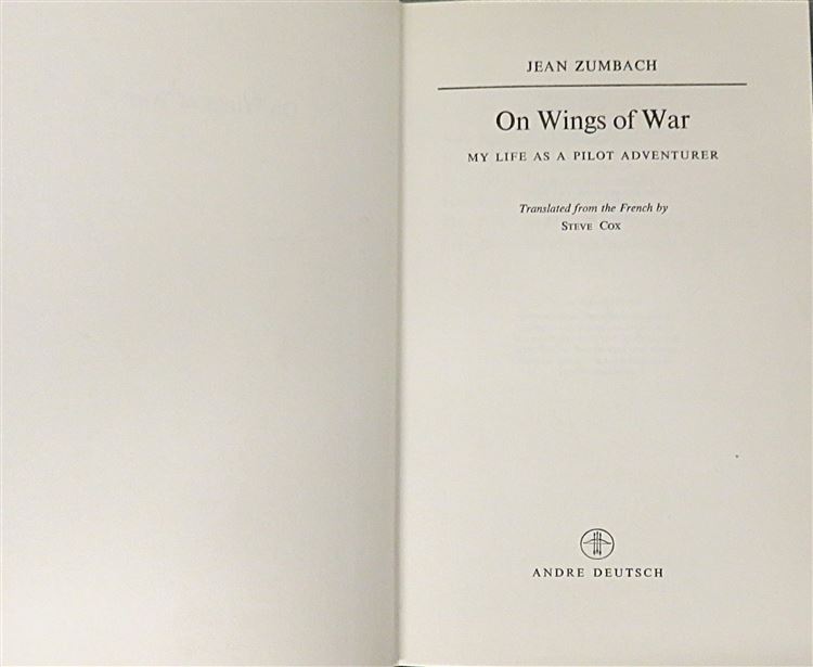 St Mary's Books is proud to present this 1975 first edition of "On Wings of War: My life as a pilot adventurer" by Jean Zumbach. Housed in its original green dustjacket featuring a full colour illustration of Zumbach's aeroplane, this hardback book is bound in peach cloth with gold gilt lettering to the spine. Inside, one finds 252 pages of text, supplemented by stunning contemporary black and white photographs. "On Wings of War" illustrates Jean Zumbach's life of adventure, from his time in the RAF during the Second World War, to his high-risk dealings in contaband, to creating the Biafran Air Force. This book, and its original dustjacket, are in very good condition, with no notable blemishes it appears unread. "On Wings of War" is looking for a new home, and would make for the perfect gift for any lovers of a good adventure.