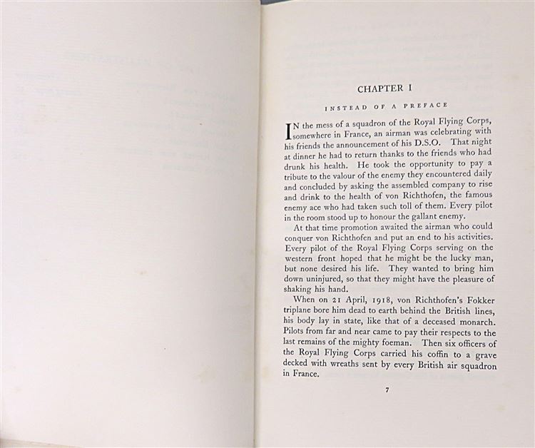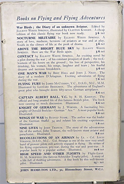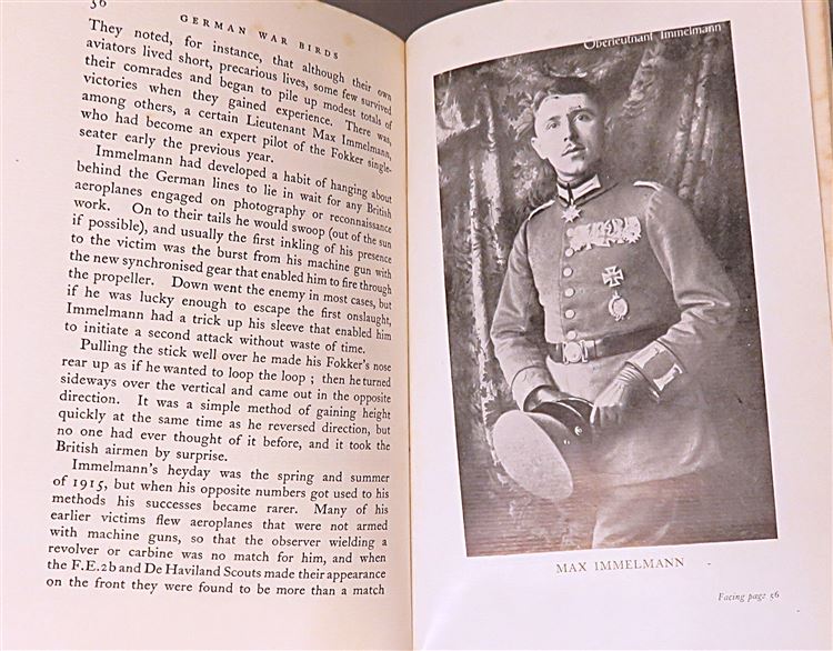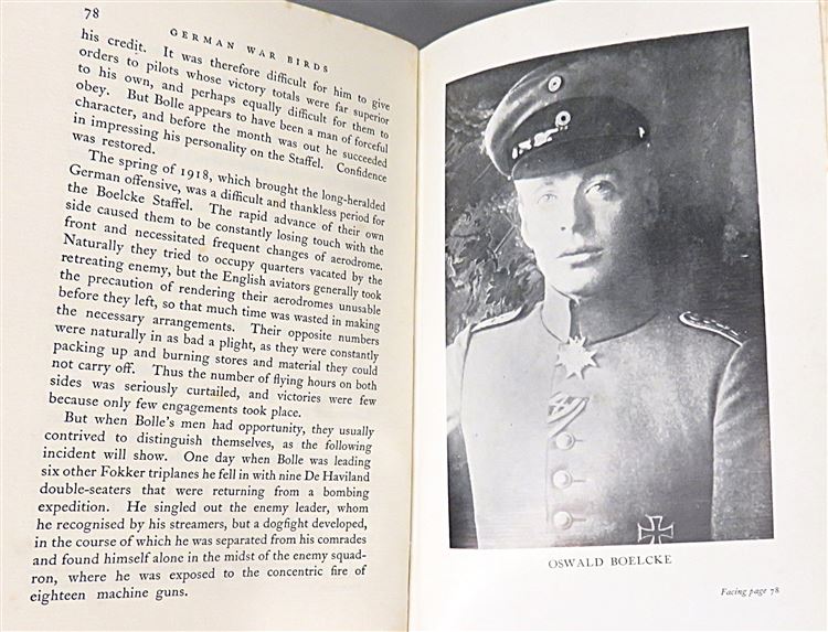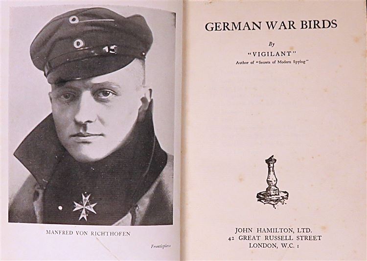 St Mary's Books is proud to present this early edition of "German War-Birds" by "Vigilant" housed in its original dustjacket featuring several brightly coloured German aeroplanes soaring through the sky. Bound in black cloth with gold gilt lettering, this hardback book has 264 pages of text, peppered with contemporary black and white photographs of notable German aces. This text depicts the lives and adventures of members of the German Flying Corps, whose epitaph "born in the war and died in the war" proves accurate. This book, and its original dustjacket, are in very good condition - with only a few minor bumps to the dustjacket and some minor foxing throughout the book to report, this copy remains clean and readable. "German War-Birds" is looking for a new home, and would make for the perfect gift for any aviation enthusiast or military historian.