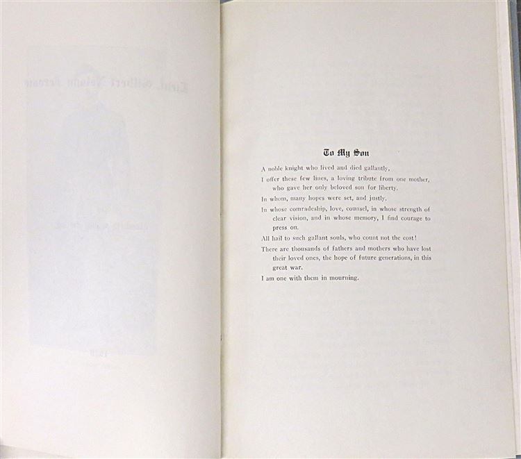 St Mary's Books presents this lovely 1920 first edition of "Lieut. Gilbert Nelson Jerome", a biography written and privately published by his mother Elizabeth Maude Jerome. Bound in blue cloth with gold gilt lettering, this hardback book contains the life story and wartime experiences of the Lieutenant, peppered with contemporary black and white photographs. This story, as told by a mother in mourning, acts as a stark reminder of the costs of war. This copy is in very good condition, with no notable blemishes or imperfections it appears unread, and forms a part of what we can only assume would have been a relatively small print run. This rare text is looking for a new home, and would make for the perfect gift for any historian hoping to get a sense of the personal side of the war.