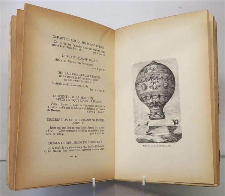 Text in French. A dictionary of prints & illustrated books on balloons & flying machines with their prices, up to 1880. Beautifully illustrated in black and white with numerous detailed drawings of selected balloons and flying machines, and complete with a bibliography. Covered with protective papers. Overall, this copy is in good condition with clean and undamaged pages throughout. There is some slight discolouration of the front cover and wear to the extremities. pp. 129.