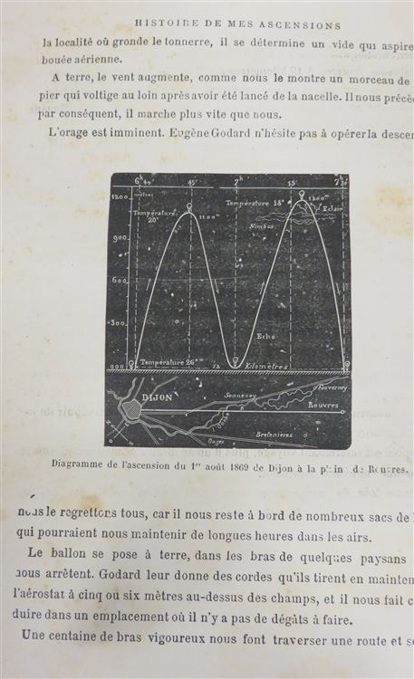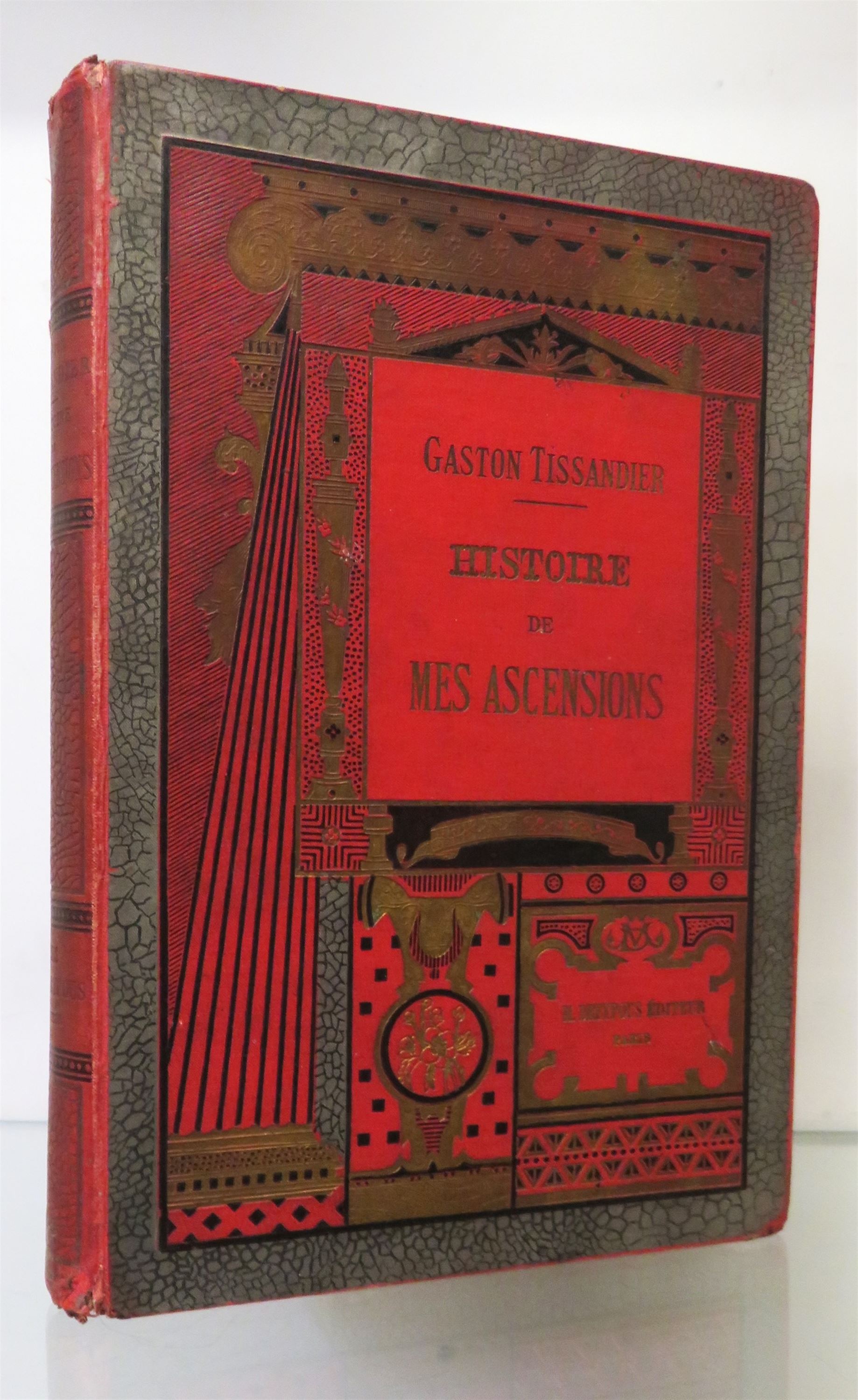 Text in French. A riveting account of 45 journeys through the air, from 1868 to 1888, generally by hot air balloon. This edition is completely revised and expanded with several new chapters. Bound in bright red cloth with beautiful gilt lettering and design on the front cover, as well as a textblock with all edges gilt, which remains bright. It is richly illustrated throughout in black and white, with diagrams, drawings, graphs and maps to support the informative writing. This copy is in very good condition. There is some wear to the extremities, and some dulling to the gilt on the front cover, but the design remains sharp and clear. The pages throughout are for the most part bright annd clean, with some foxing to only a few. pp. 308.
