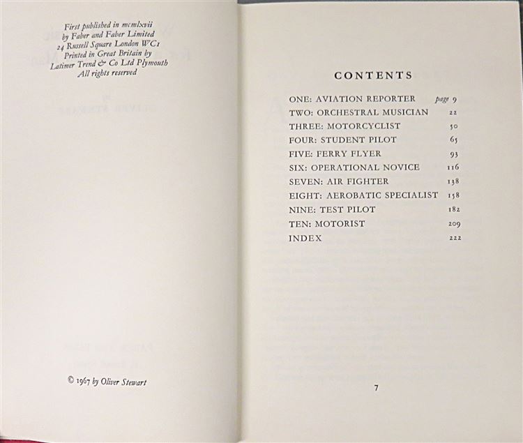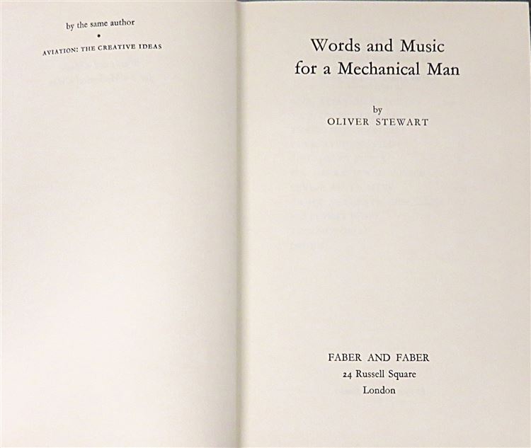 St Mary's Books is proud to present this 1967 first edition of "Words and Music for a Mechanical Man" an autobiography by Oliver Stewart. Housed in its original cream dustjacket featuring blue and red ink blocks in the shape of a target, this hardback book is bound in red cloth with gold gilt lettering to its spine. Inside, one finds 227 pages of text, detailing the fascinating life of an aviation reporter, flautist, motorcyclist, and RAF pilot. This copy is in very good condition, with few notable blemishes or imperfections other than the slight bump to the dustjacket, it is clean and readable and appears virtually unread. "Words and Music for a Mechanical Man" is looking for a new home, and would make for a perfect gift for any lover of a varied and exciting autobiography.