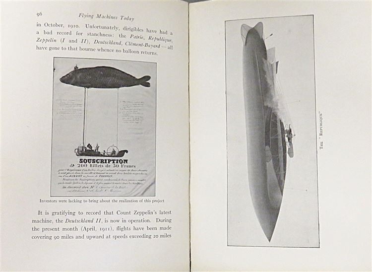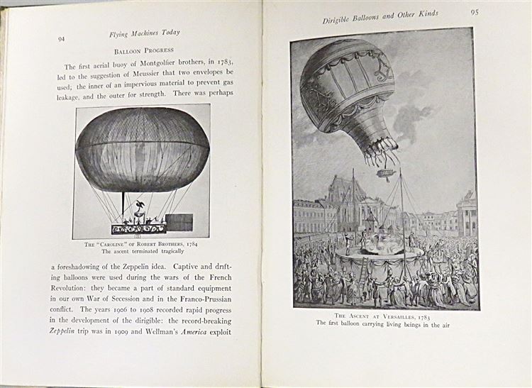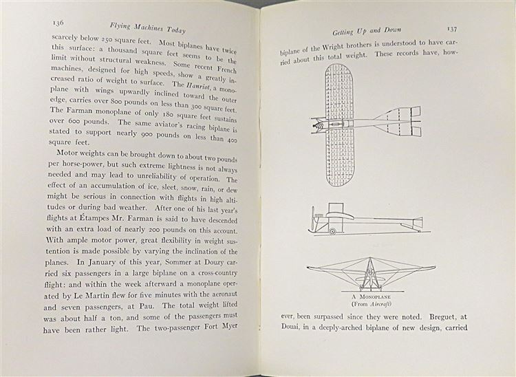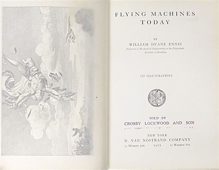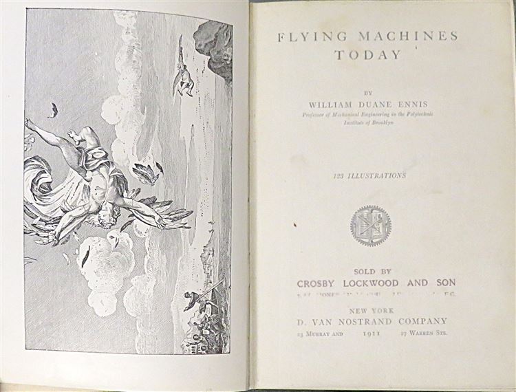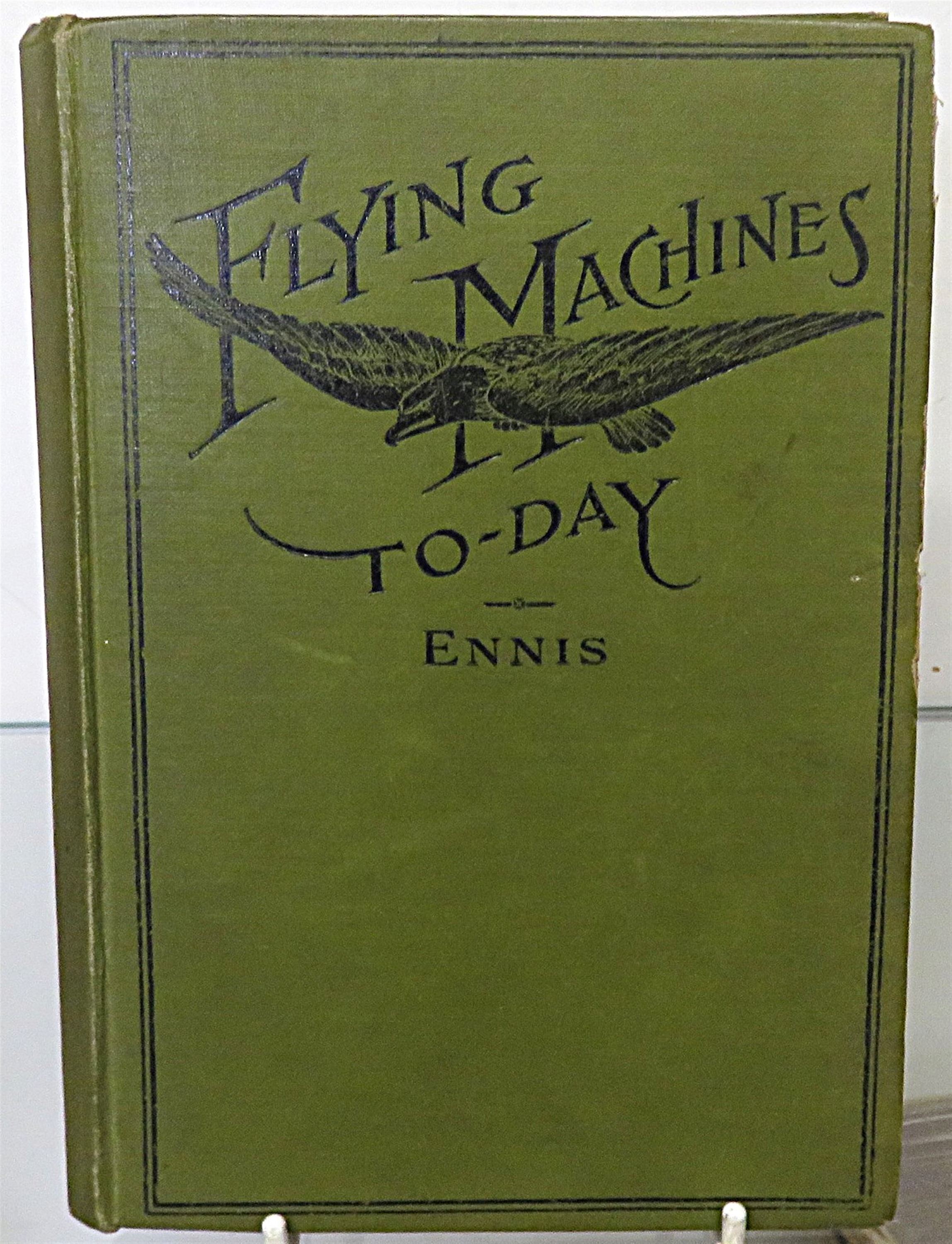 St Mary's Books is proud to present this 1911 first edition of "Flying Machines Today" by William Duane Ennis. Bound in olive green cloth with black ink lettering and a charming illustration of an eagle in flight on the cover, this hardback book contains i-xvi, 205pp., and 32 pages of advertisements to the back of the book. Inside, one finds a stunning illustration of Icarus falling from the heavens, as well as 123 other black ink diagrams and detailed illustrations of contemporary aviation vehicles, such as balloons and aeroplanes. This copy is in very good condition, other than some minor offsetting on the front free endpaper, there are few other notable imperfections, and the text remains vritually as clean and readable as the day it was printed. "Flying Machines Today" is looking for a new home, and would make for a perfect gift for any early 20th century aviation enthusiast.