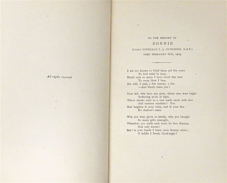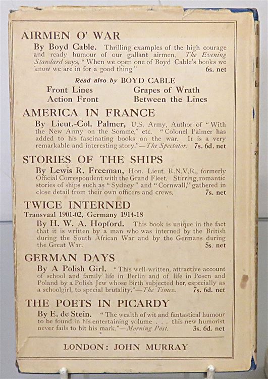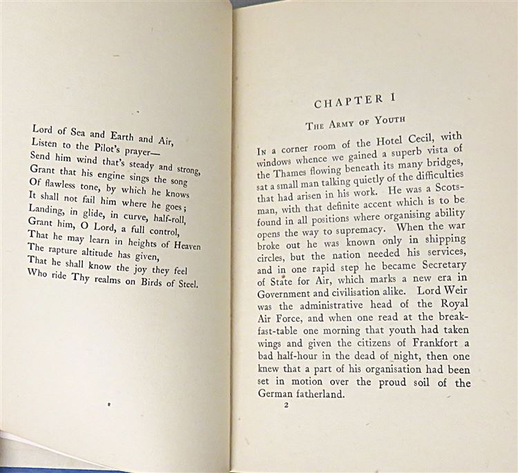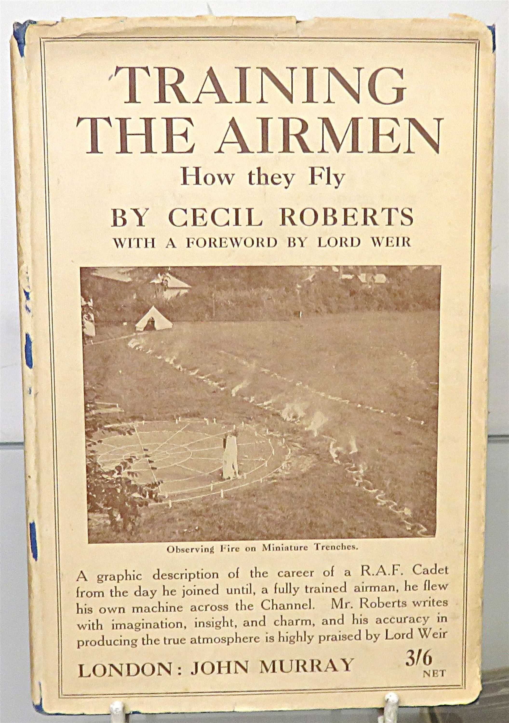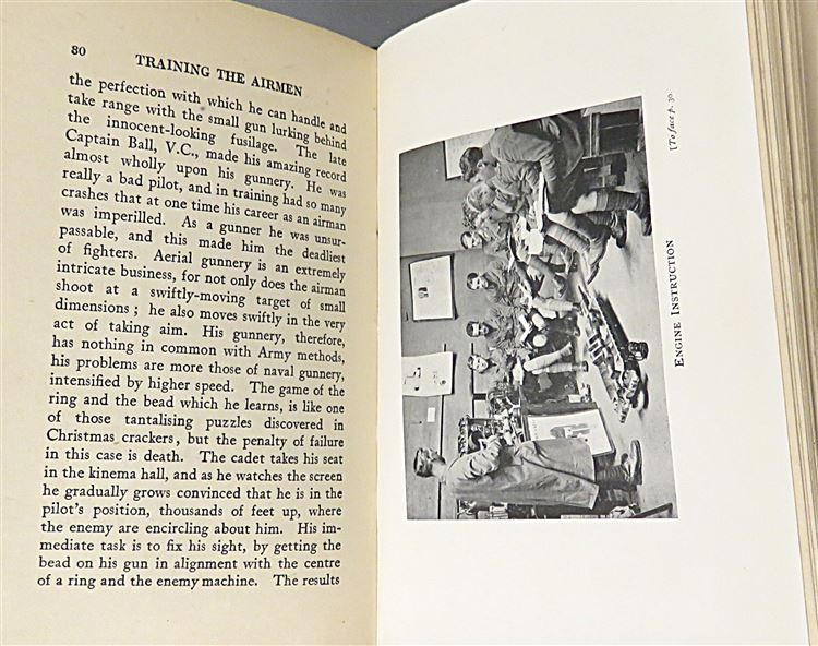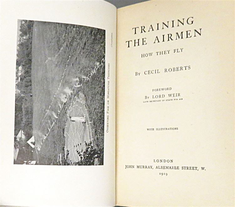 St Mary's Books is proud to present this 1919 edition of "Training the Airmen: How they fly" by Cecil Roberts. Housed in its original cream dudstjacket featuring a black and white photograph of an RAF training scenario, this hardback book is bound in blue cloth with black ink lettering to the cover and spine. Inside, one finds i-xii, 79pp., and 2 pages of advertisements to the back of the book. This book is peppered with black and white photographs, much like the frontispiece which mirrors the image on the dustjacket - all of which help to set the scene for this account of RAF training techniques throughout the First World War. This book is in very good condition, though its dustjacket is bumped and torn and thus can only be described as good, the book itself has been remarkably well preserved, with only some minor offsetting to the free endpapers to report. "Training the Airmen" is looking for a new home, and would make for the perfect gift for anyone looking for insight into RAF training techniques.