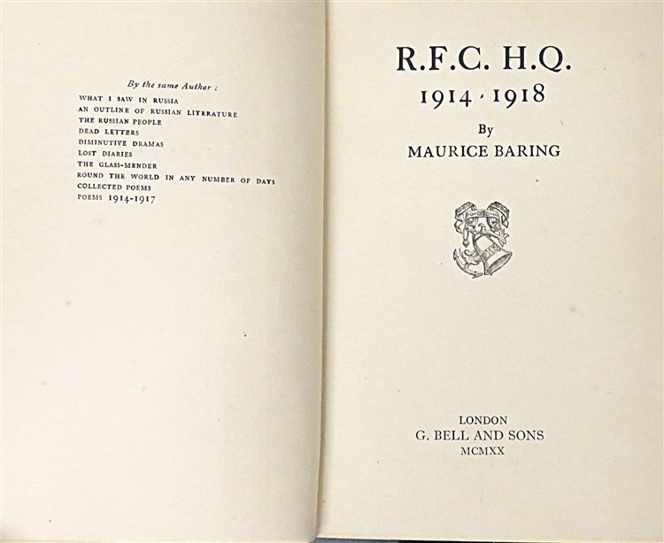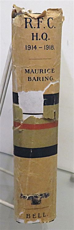 St Mary's Books is proud to present this 1920 edition of "R.F.C. H.Q. 1914-1918" by Maurice Baring. Housed in its original cream dustjacket featuring navy, red, and green horizontal stripes, this hardback book is bound in navy buckram with gold gilt lettering to the spine. Inside, one finds 315 pages of text describing, in intimate detail, Maurice Baring's wartime experiences, particularly concerning the people he met and the ideas they shared with him. This book is in very good condition - though the dustjacket can only be described as fair to good due to the damage it has suffered, the book itself remains well-preserved, with only some minor foxing to its edges to report. "R.F.C. H.Q. 1914-1918" is looking for a new home and would make for the perfect gift for anyone hoping to read a more personal account of the Great War.