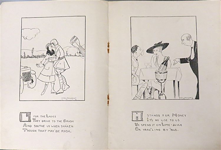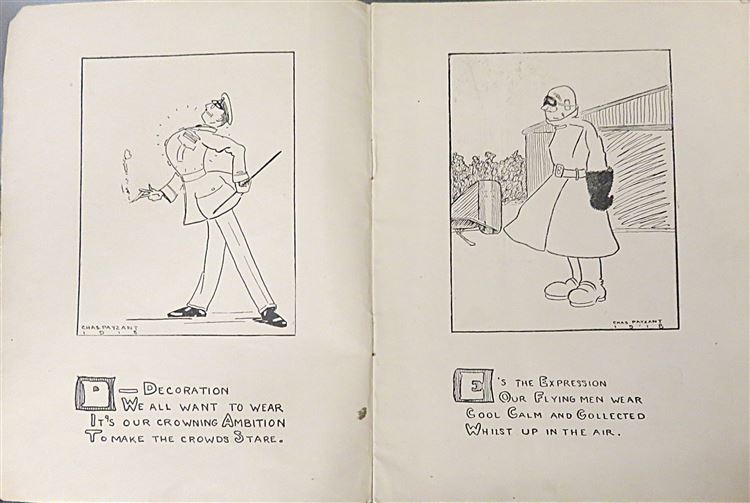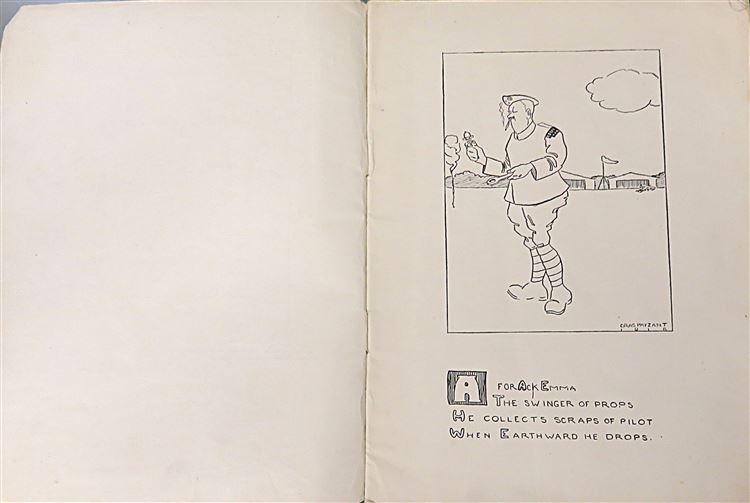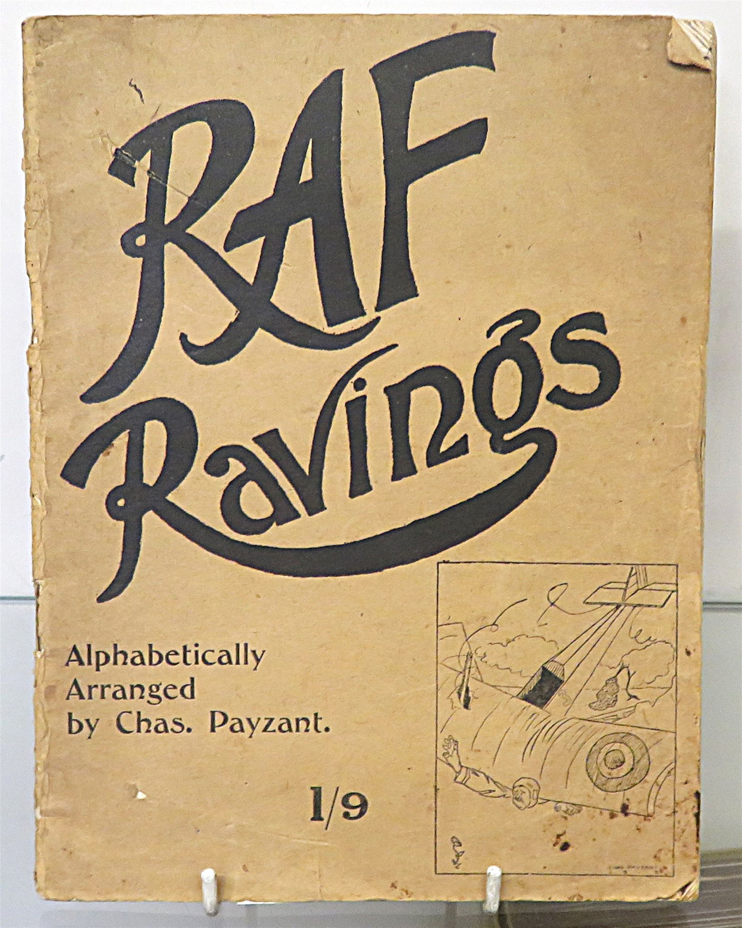 St Mary's Books is proud to present "RAF Ravings" by Chas. Payzant. This softcover book features a bold black ink title and a small cartoonish illustration of an airman squashed by an aeroplane on the cover. Inside, one finds 28 pages of text, each containing Chas. Payzant's charming illustrations and commentary on airmen and their experiences in alphabetical order. This humourous little book is in very good condition, with few notable blemishes other than some bumps and tears to the cover, the interior of the book remains remarkably clean and readable. "RAF Ravings" is looking for a new home and would make for a perfect gift for any RAF cartoon lover.