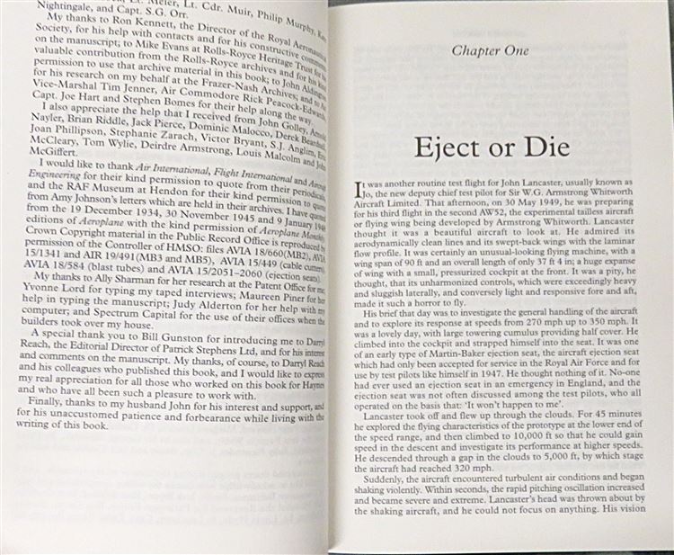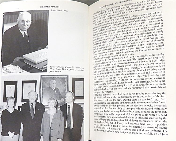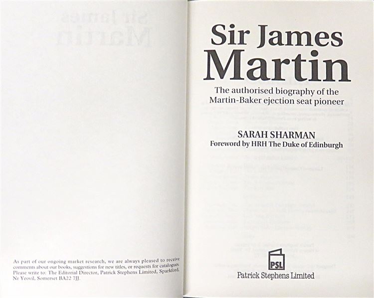 This lovely 1996 first edition of "Sir James Martin: The authorised biography of the Martin-Baker ejection seat pioneer" by Sarah Sharman is housed in its original pictorial dustjacket featuring a full-colour photograph of the ejection seat in action. This hardback book is bound in navy cloth with gold gilt lettering to the spine and contains 304 pages of text, supplemented by black and white photographs. This copy, which offers an important contribution to aviation history, provides an account of the man who was recognised as one of the great British engineers of the century. This book, and its original dustjacket, are in very good condition - with no notable blemishes or imperfections, they appear virtually as-new. "Sir James Martin" is looking for a new home and would make for the perfect gift for any aviation engineering enthusiast or lover of a varied autobiography.