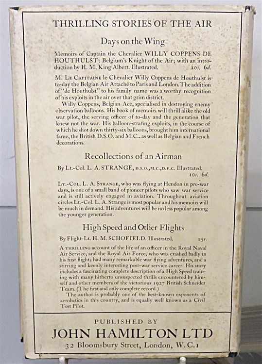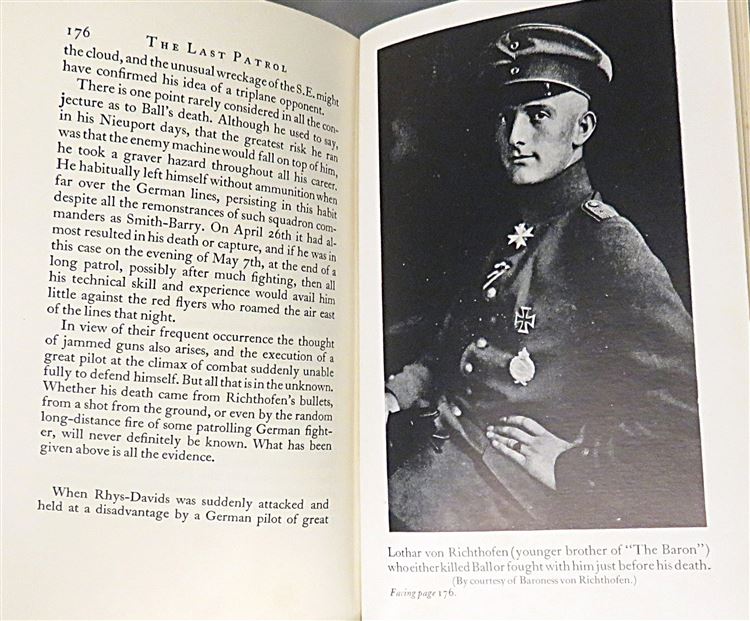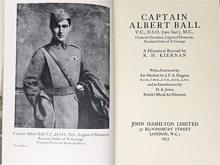 St Mary's Books is proud to present this 1933 edition of "Captain Albert Ball V.C., D.S.O. A Historical Record" by R. H. Kiernan. Housed in its original white dustjacket featuring a portrait of Ball by Denholm Davis (matching the frontispiece), this hardback book is bound in black cloth with gold gilt lettering to the cover and spine. Inside, one finds i-xxii and 203 pages of text, peppered with black and white photographs helping to cement the details of this "brief but crowded life". This copy and its original dustjacket are in very good condition, remarkably so considering their age and rarity - with no notable blemishes or imeprfections other than some slight bumping on the dustjacket. "Captain Albert Ball" is looking for a new home and would make for the perfect gift for anyone hoping to understand the personalities of pilots in the Great War through a personal account.