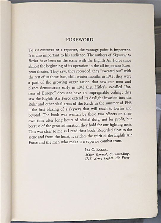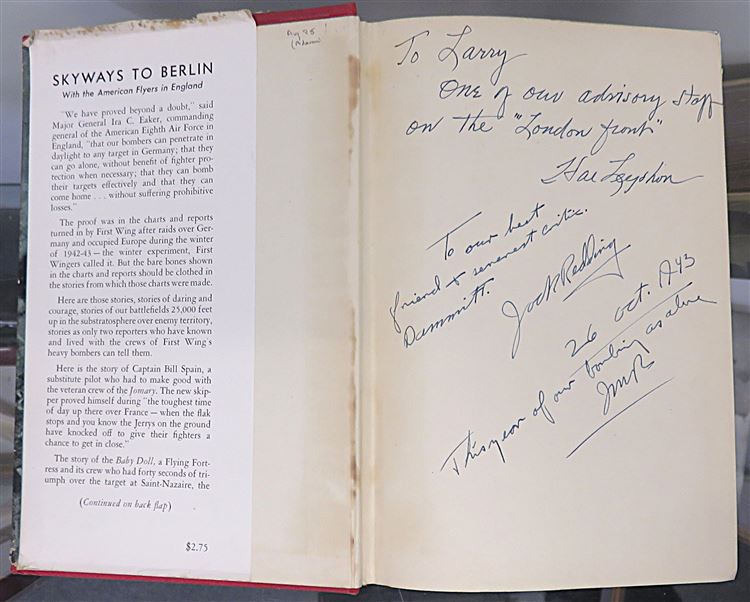 Hardback. A First Edition Copy signed by the authors, key figures who managed media relations for the U.S. Army Air Forces bombing campaigns in Europe. This copy is complete with a dust jacket although it is worn to the extremities with a large closed tear and chipping to the spine. Underneath lie red cloth boards with titles in gilt to the front and spine. There is a little bumping to the corners and spine, although showing no other wear with the cloth bright and clean. Considering the age of the book, the pages within appear unread, illustrated with several photographic images. pp. 290. Overall, despite the dust jacket, this book is in very good condition. A lovely addition for any aviation enthusiast.