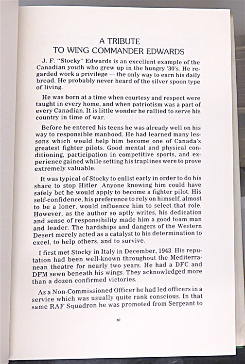 Hardback. A very clean bright First Edition copy. This copy is complete with a pictorial dust jacket, showing just a little edge wear. While underneath the green cloth boards are in excellent condition with just light creasing to the spine, nothing serious. Internally the pages appear unread with no marks or inscriptions. pp. xii + 308 + xxiv. The true inspirational story of James "Stocky" Edwards Canada's top fighter pilot. A lovely copy ideal for any aviation enthusiast.