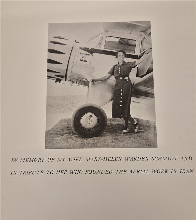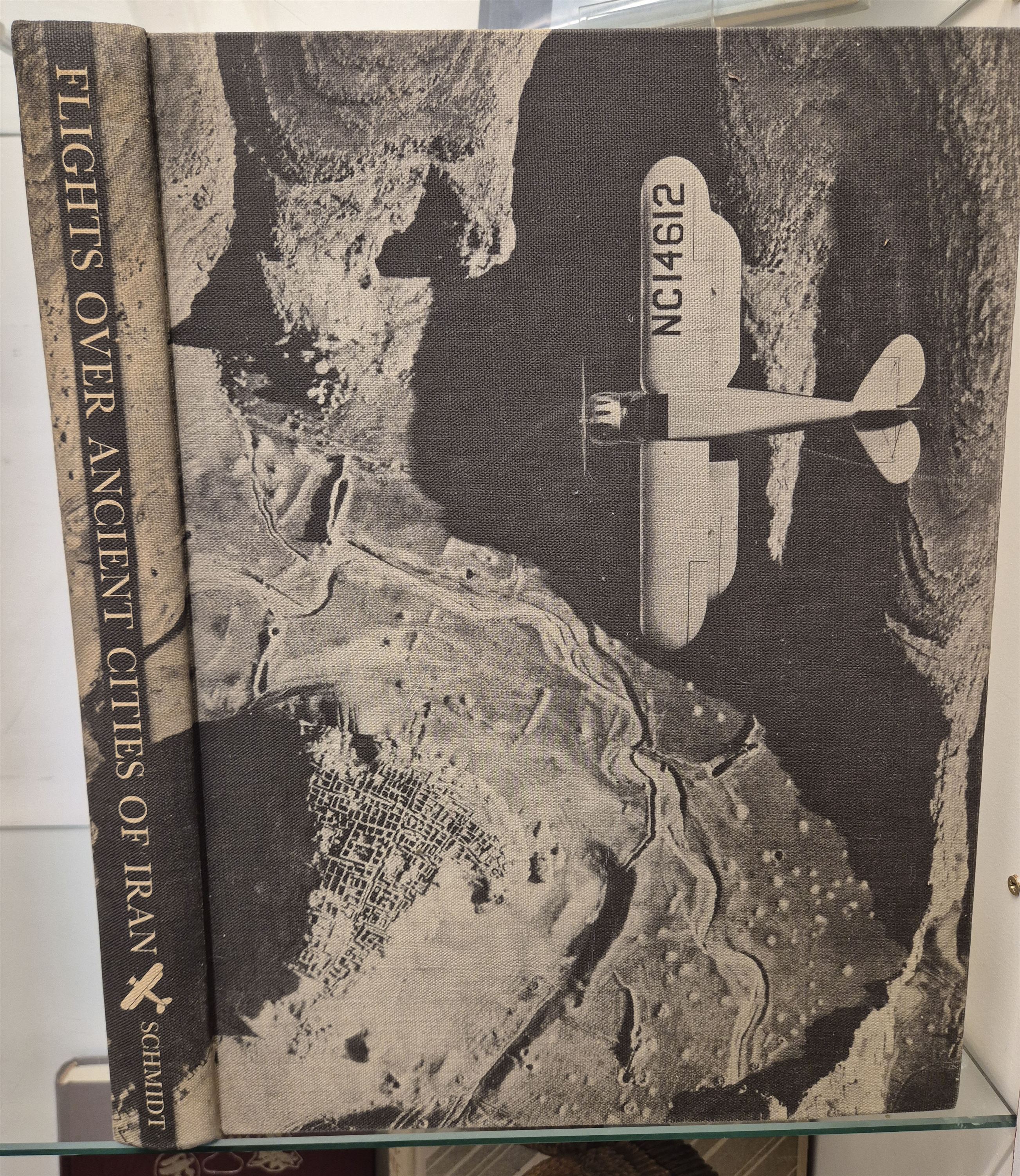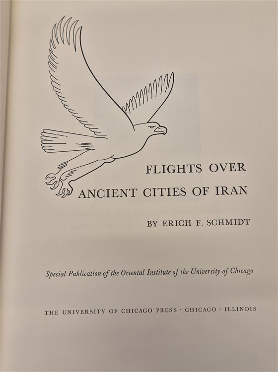 Flight Over the Ancient Cities of Iran is a monumental archaeological record by Erich F. Schmidt, first published in 1940. It is considered a foundational text in aerial archaeology, capturing Iran's ancient landscapes with unprecedented clarity. This remarkable volume, detailing the amazing accomplishments of Erich F Schmidt and his with, the book is dedicated to Schmidt's wife, " In memory of my Wife Mary-Helen Warden Schmidt and in tribute to her who founded the Aerial work in Iran. Complete with 119 photographic illustrations many with overlays, With original photographic cloth boards, this stunning volume is part of a large aviation collection.