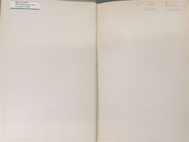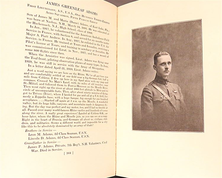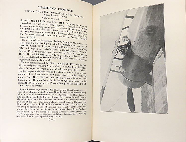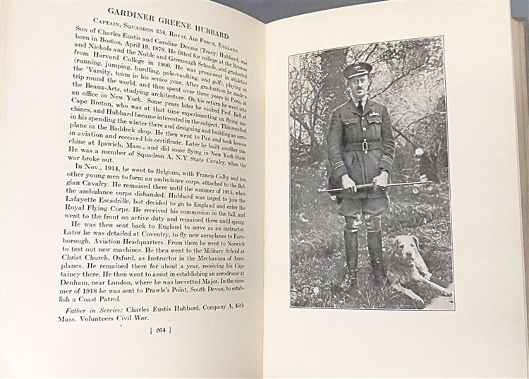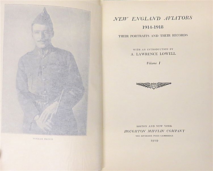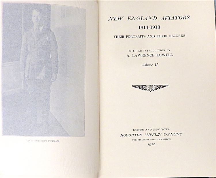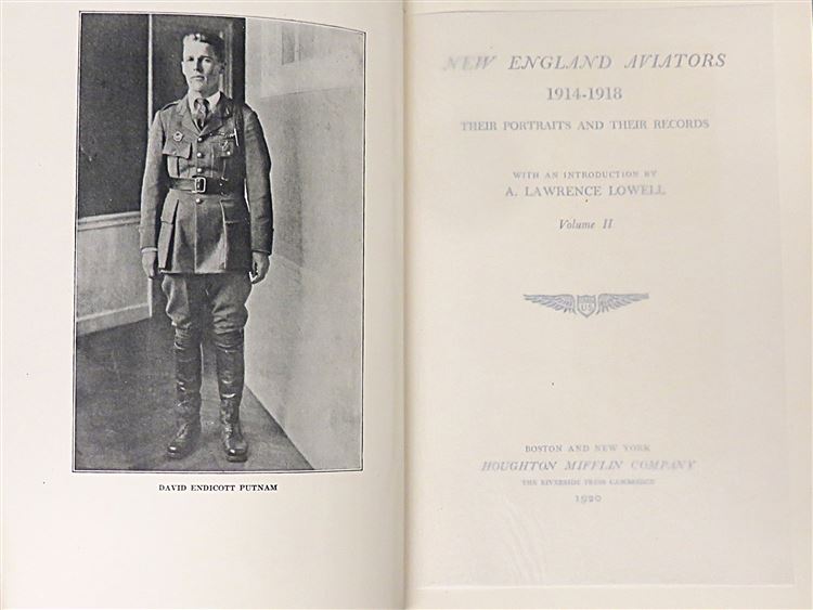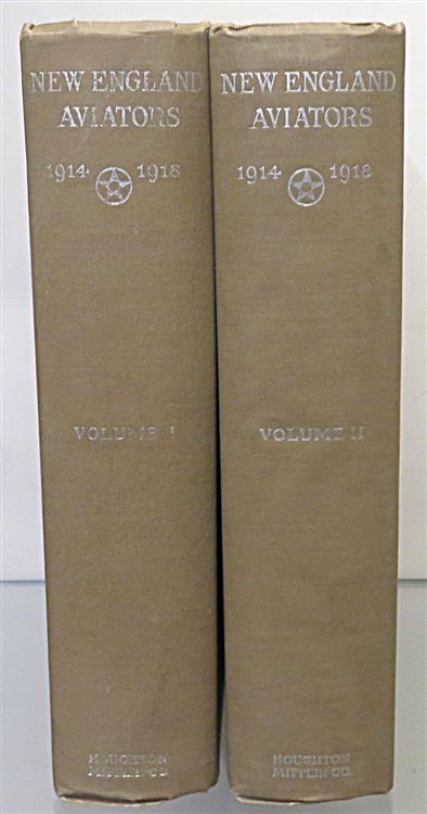 St Mary's Books is proud to present these 1919 and 1920 first editions of "New England Aviators 1914-1918 Their Stories and Their Records" in two volumes. These hardback books are handsomely bound in grey cloth with silver gilt lettering and decorative blue shields on their covers. Inside both editions, one finds profiles and photographs of hundreds of aviators, with crosses added to the soldiers who sadly died whilst in service. Through this catalogue, the reader can become intimately acquainted with the faces and lives of select members of the American Air Force. This two volume set is in very good condition, with few notable blemishes or imperfections on the interior or exterior of either copy other than a small ex-libris paste down on the front free endpaper of both books, they have been remarkably well preserved. "New England Aviators" are looking for a new home and would make for the perfect gift for any historian of the American Air Force.