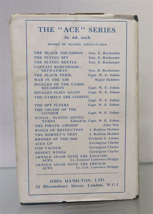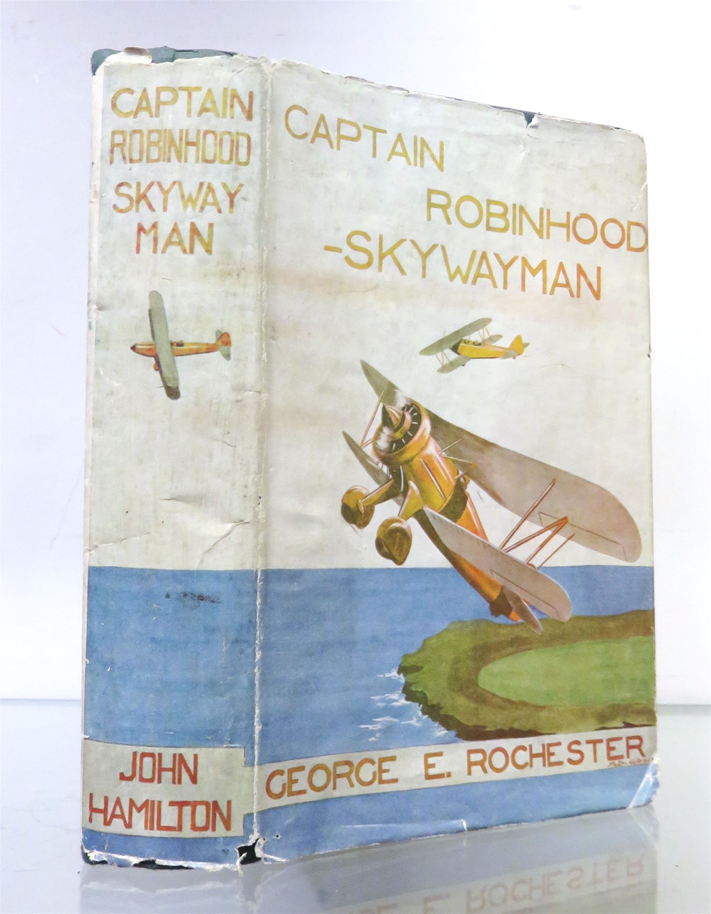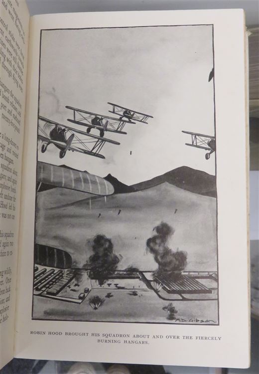 A thrilling story that follows the adventures of a modern skywayman, Capt. Robinhood, as he wages war on the enemies of England. This is a scarce and collectable item from its time. It is a lovely copy, bound in blue boards and with four lovely illustrations in black and white. Overall, it is in very good condition. The pages are bright and clean throughout with no foxing. There is only very slight wear to the edges of the covers, and the binding remains strong. The dust jacket is in good condition. There is some tearing and wear to the top and bottom edges of the spine and the cover. pp. 220. "Captain Robinhood, Skywayman" forms only a small part of the extensive collection of aviation titles available at St Mary's Books.