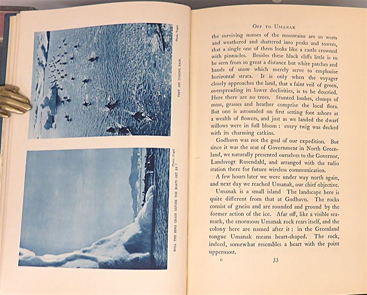 Hardback. A 1935 First Edition copy of Ernst Sorge' account of the 1932 Universal- Dr Fanck expedition to West Greenland, which filmed the movies S.O.S. Eisberg and North Pole Ahoy. Sorge, a scientific adviser, provides details on navigating glaciers, icebergs, and filming, with many blue tinted photographs. This copy is bound in blue cloth with bright gilt titles to the spine. The binding is in a good clean condition and shows just minor bumping to the corners and light fading to the spine. Internally the pages are very clean. pp. 255 + 16. Part of a huge collection of aviation acquired by St Marys Books.