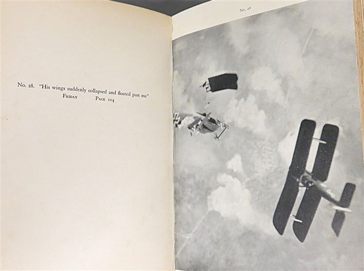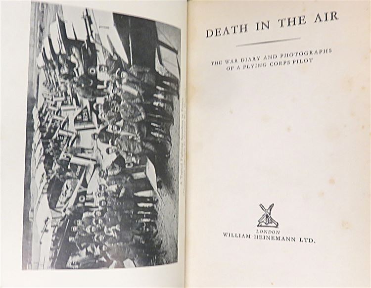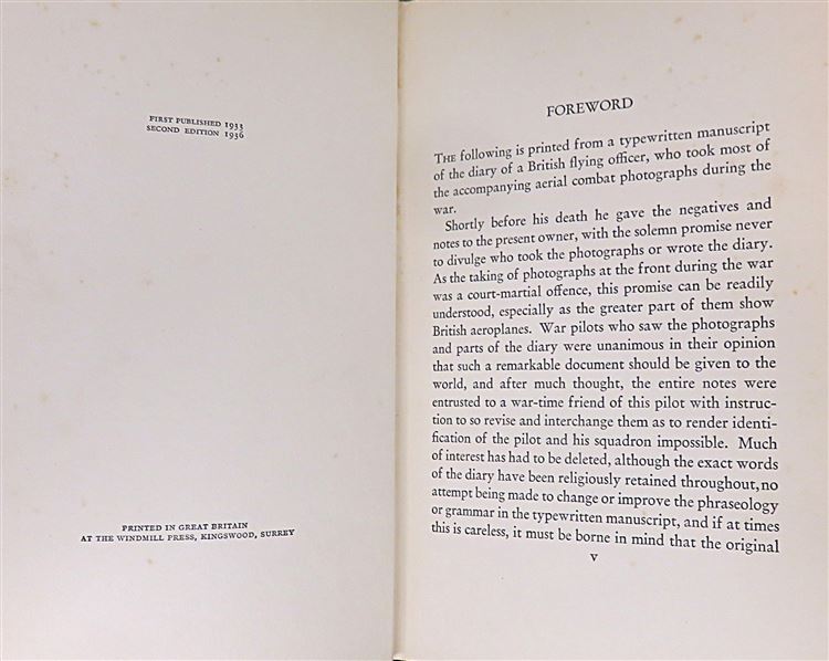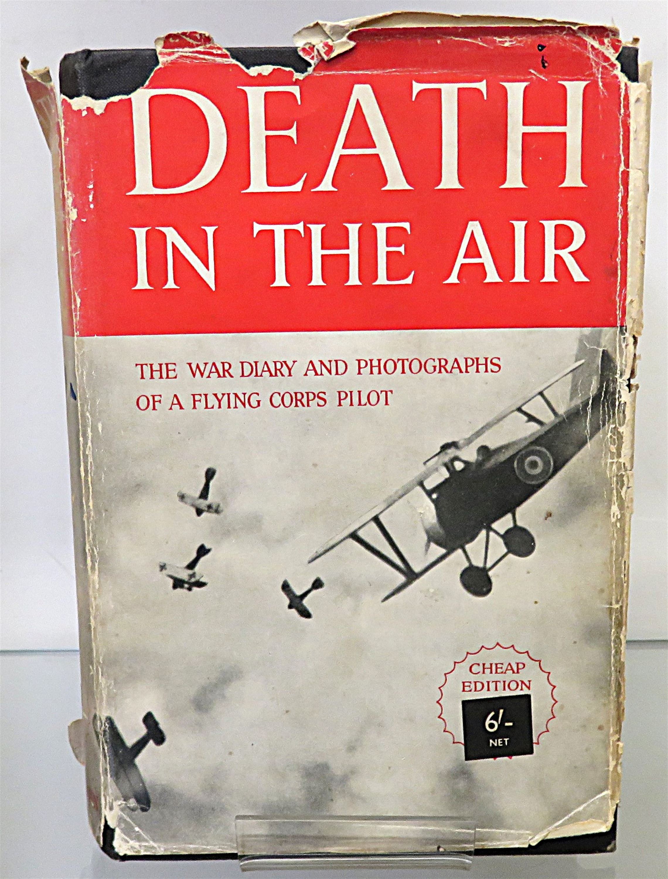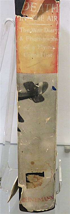 This lovely hardback 1936 second edition of "Death in the Air: The War Diary and Photographs of a Flying Corps Pilot" is housed in its original red dustjacket featuring one of the authors black and white photographs. Bound in black cloth with gold gilt lettering to the spine, this hardback book contains i-xvi and 159 pages of text, peppered with the authors own photography. This controversial book which claims to showcase original photography from the war, was later discovered to be the work of a film industry set designer and model maker whom, whilst he did serve in the war, fabricated the photographs. This copy is in very good condition, though the dustjacket as suffered significant damage and thus can only be described as fair, the book itself has been well preserved with the exception of some minor foxing throughout. "Death in the Air" is looking for a new home, and would be the perfect gift for any reader eager to delve into this fascinating account.