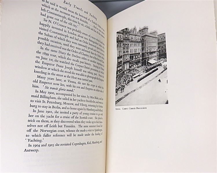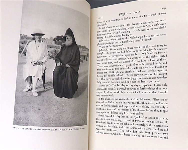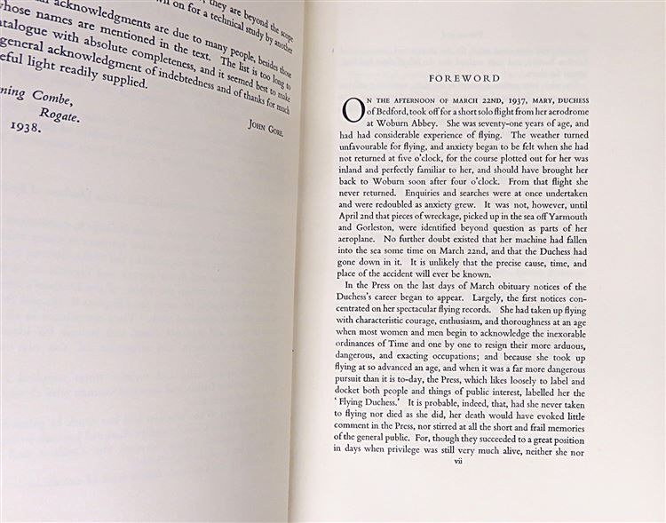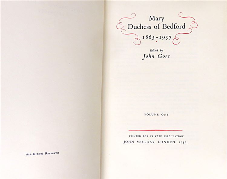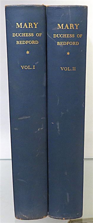 St Mary's Books is proud to present this lovely hardback 1938 limited edition two volume set of "Mary, Duchess of Bedford 1865-1937" bound in quarter blue leather with blue cloth and gold gilt lettering on the spine. Across the two books, the reader is treated to the extraordinary life and adventures of a pioneering aviator and ornithologist, supplemented by her own diary entries, black and white photographs, and documents. This set is in very good condition, with few notable blemishes or imperfections other than some minor staining and bumping to the boards. The interior of both books, however, is remarkably clean, bright, and readable. "Mary, Duchess of Bedford" is looking for a new home and would make for the perfect gift for any aviation enthusiast or lover of a varied autobiography. Vol.1: i-xv, pp.1-200 Vol.2: i-vii, pp. 201-480