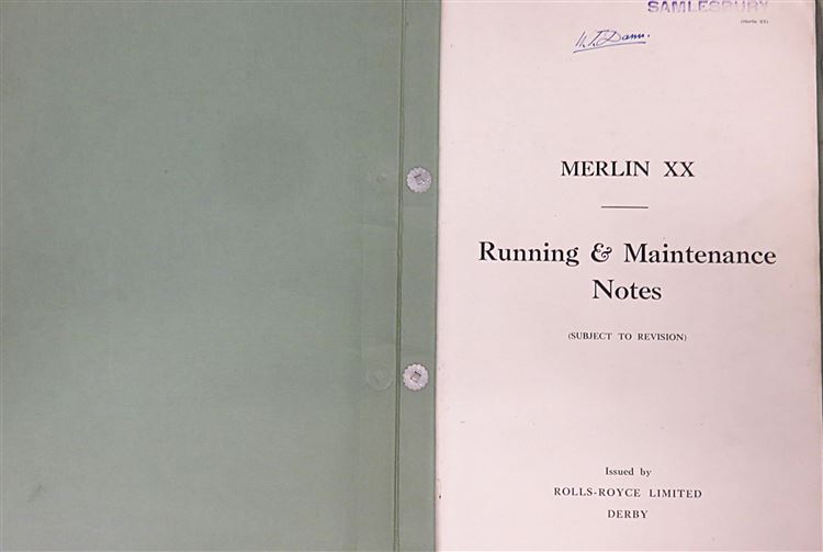 St Mary’s Books is proud to present this November 1941 issue of Rolls-Royce Aero Engines, "Merlin XX Running and Maintenance Notes". Bound in green paper with the Rolls-Royce logo handsomely presented in dark green ink on the cover, this paperback copy contains 48 pages of text and 22 extra figures to the back of the book. Inside, the reader finds a detailed description of the engine and an account of its running and maintenance, complimented by 22 stunning fold-out illustrations, both in black ink and in full-colour. This copy is in very good condition – though there is some slight bumping to the edges of the cover, as is to be expected with a paperback book of this age, one also finds a signature inscription on the title page and cover, as well as a Samlesbury stamp on the title page. This book is looking for a new home and would make for the perfect gift for any aviation enthusiast.