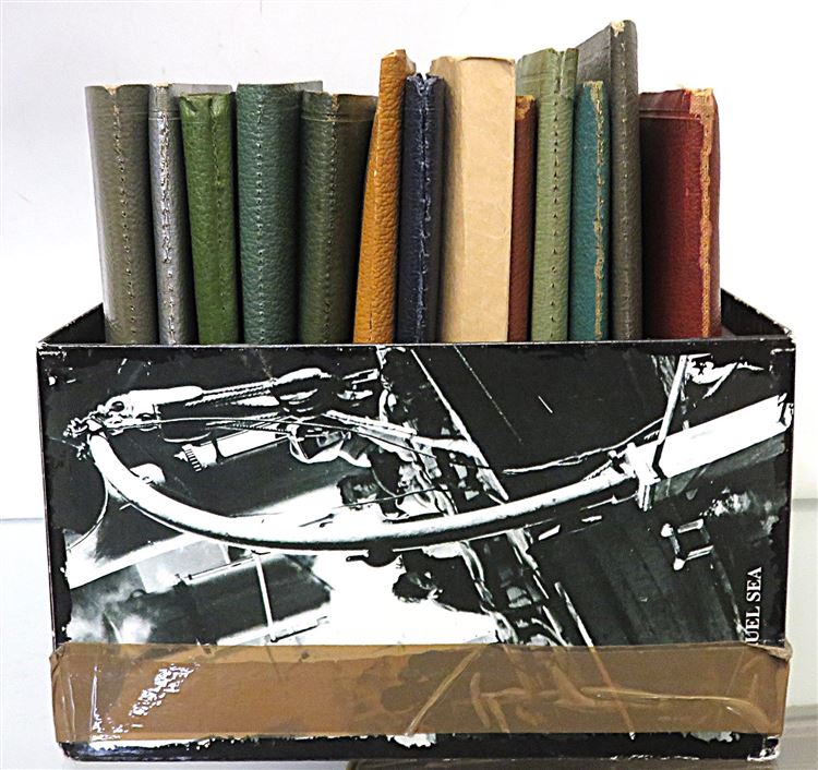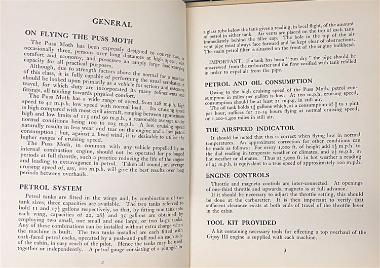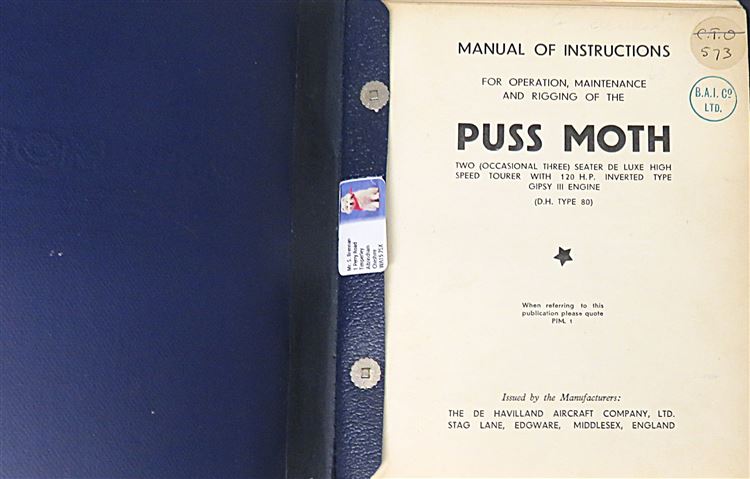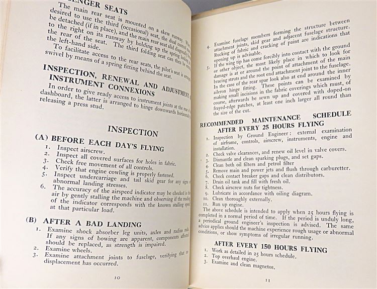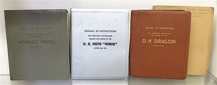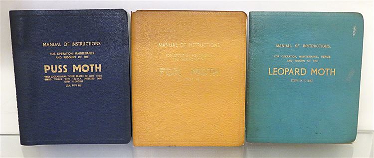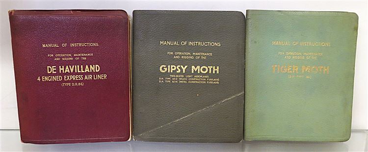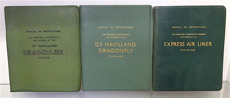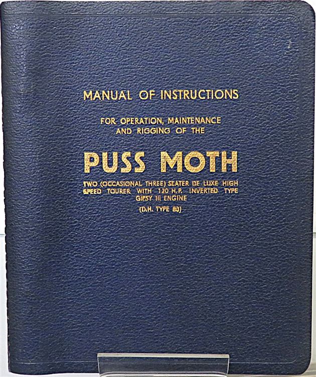 Take to the skies with this incredible set of 12 Original De Havilland Aircraft Manuals, now at St Mary's Books. Notable editions in this set include an exceptionally clean and bright copy of the rare "Puss Moth" manual, with only a few small ex-owner paste-downs and stamps on the title page, this edition is alone worth £300-600. In addition, one finds a "Hornet Moth" manual within this set, another rare copy, which though is less well-preserved and marred with ex-owner inscriptions and stamps, is nevertheless very collectable. In general, each softcover manual is in very good condition, bound in brightly coloured leather with gold gilt lettering, their pages remain clean and bright with some manuals including inscriptions, stamps or paste downs from previous owners. Each manual begins with a few pages of text before being completed with fold-out diagrams to aid the aviator. The set in its entirety includes manuals for the De Havilland: 4 Engined Express Air Liner Type D.H.86 (Burgundy leather binding, 28pp.); Gipsy Moth D.H. Type 60G and 60M (Grey leather binding, 10pp.); Leopard Moth Type D.H. 85 (Bright blue leather binding, 41pp.); Tiger Moth D.H. Type 82 (Light green leather binding, 23pp.); D.H. Dragon Type D.H. 84 (Brown leather binding, 23pp.); Puss Moth D.H. Type 80 (Navy leather binding, 26pp.); Fox Moth D.H. Type 83 (Yellow leather binding, split at the spine, lightly foxed 21pp.); Express Air Liner Type D.H. 86A. (Dark green leather binding, title page lighlty foxed, 40pp.); Dragonfly Type D.H. 90 (Teal leather binding, 44pp.); Dragon-Six Type D.H. 89 (Green leather binding, gold gilt lettering worn down to black, 26pp.); D.H. Moth "Minor" Type D.H. 94 (Silver leather binding, black lettering, 35pp.); Hornet Moth Type D.H. 87A (Grey leather binding, gold gilt lettering worn down to black, numerous inscrip on title page, 43pp.). Alongside further diagrams for the DH84 Dragon bound in brown paper, this set is looking for a new home and would make for the perfect gift for any collector.