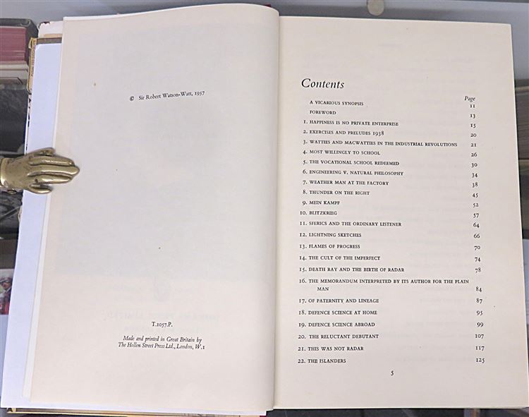 This 1957 First Edition Copy is complete with a dust jacket. It tells Sir Robert Watson-Watt's personal account of the three technological and methodological advancements he believes were fundamental to the Allied success in World War II.