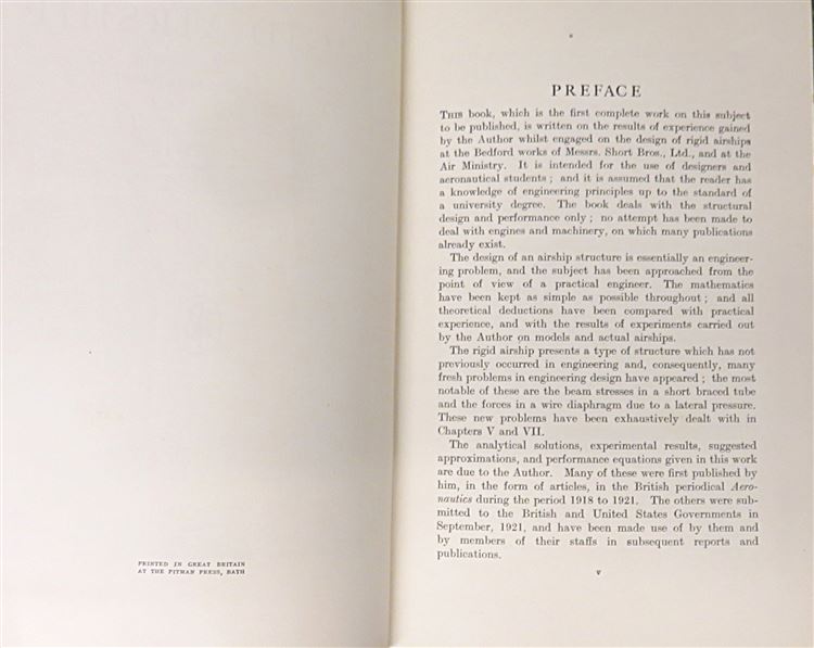St Mary's Books is proud to present this 1925 edition of "The Rigid Airship: A Treatise on the Design and Performance" by E. H. Lewitt. Bound in navy cloth with gold gilt lettering on the cover and spine, this hardback book contains i-x, 283 pp., and 27 pages of advertisements to the back of the book. Within the pages of this book, the reader is treated to an account of the structural design and performance of rigid airships, intended for the use of designers and aeronautical students who would already have some knowledge of engineering principles. These instructions are supplemented by fold-out and in-book diagrams, black and white photographs, and detailed descriptions. This copy is in very good condition - and other than some very minor foxing has been remarkably well preserved. "The Rigid Airship" is looking for a new home and would make for the perfect gift for any aviation enthusiast.