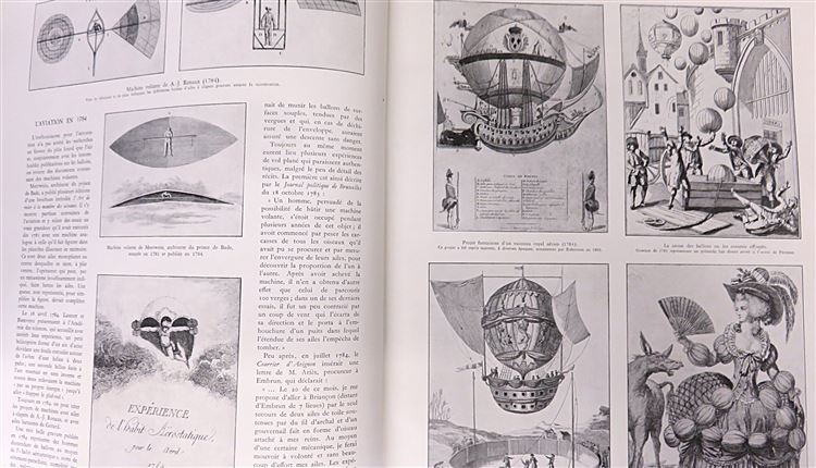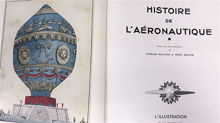 St Mary's Books is proud to present this 1932 first edition of "Historie de l'Aeronautique" by Charles Dollfus and Henri Bouche. Bound in navy buckram with a tactile black and white ink aviation logo in the centre, this quarto size hardback book contains i-xxiv and 572 pages of text. Within the pages of this book, past the marbled free endpapers, the reader is treated to a detailed French language account of the history of aviation, supplemented by black and white photographs, full-colour illustrations, diagrams, and detailed analysis. This copy is in good condition - the gold gilt has worn off the title, there is some bumping to the corners, and the spine is weak - however, the interior remains remarkably clean and readable. "Historie de l'Aeronautique" is looking for a new home and would make for a perfect gift for any aviation enthusiast.