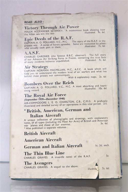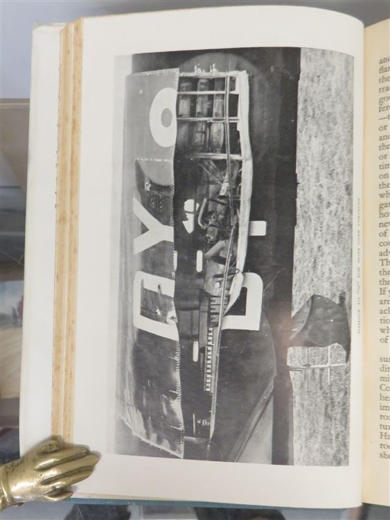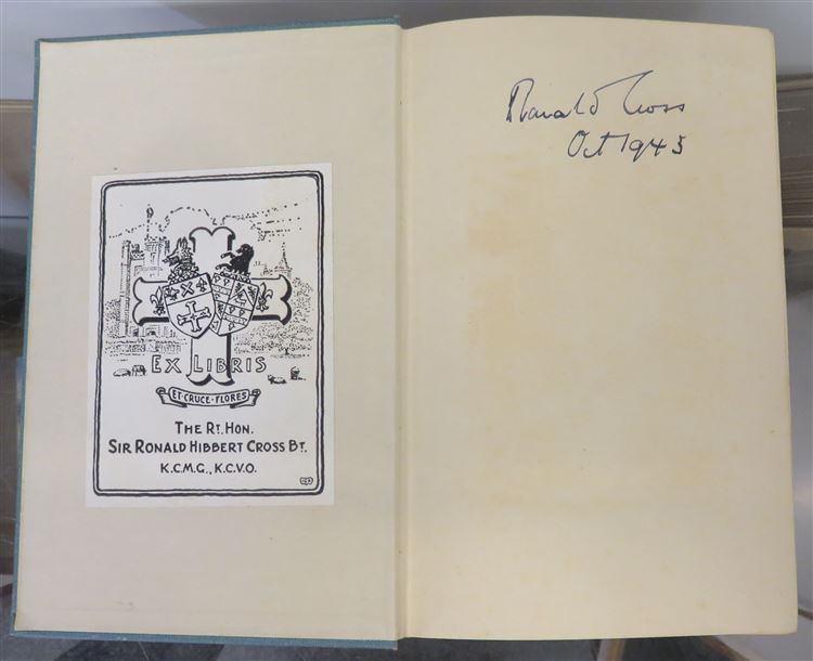 St Mary's Books is proud to present this c.1943 edition of "Bomber Pilot: A Squadron-Leader's Chronicle of Bombing Offensives 1939-1942" by Squadron-Leader Leonard Cheshire, and signed by a previous owner of the book and notable politician and diplomat, Sir Ronald Cross. Housed in its original dustjacket featuring an aeroplane casting a shadow on a map of Europe, this hardback book is bound in teal cloth with black ink lettering to the spine. Inside, one finds 136 pages of text, peppered with black and white photographs, supplementing this vivid and intimate chronicle of Cheshire's flights over enemy territory, as well as the day to day life of the RAF as the background of heroic action. This copy is in very good condition - though the dustjacket can only be described as good as it has suffered damage, particularly on the front top edge and the back bottom edge. The book itself, on the other hand, remains bright, clean and readable, with only a Sir Ronald Cross ex-libris paste-down on the front free endpaper to note, as well as his 1943 signature. "Bomber Pilot" is looking for a new home and would make for the perfect gift for any aviation enthusiast.