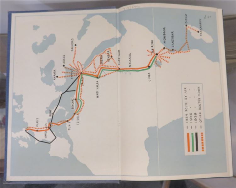This is one of the rare autobiographical works of a British commercial pilot active in the thirties. The wonderful book is bound in dark blue cloth. It is also illustrated richly throughout with drawings by the author. The endpapers are illustrated with maps charting the routes that the author flew over Africa and Europe. Overall, this copy is in very good condition with clean and bright pages throughout. There is some slight fading to the extremities of the covers. The dust jacket is in good condition, with open tears along the edges, especially at the corners. pp. 183.