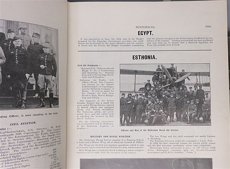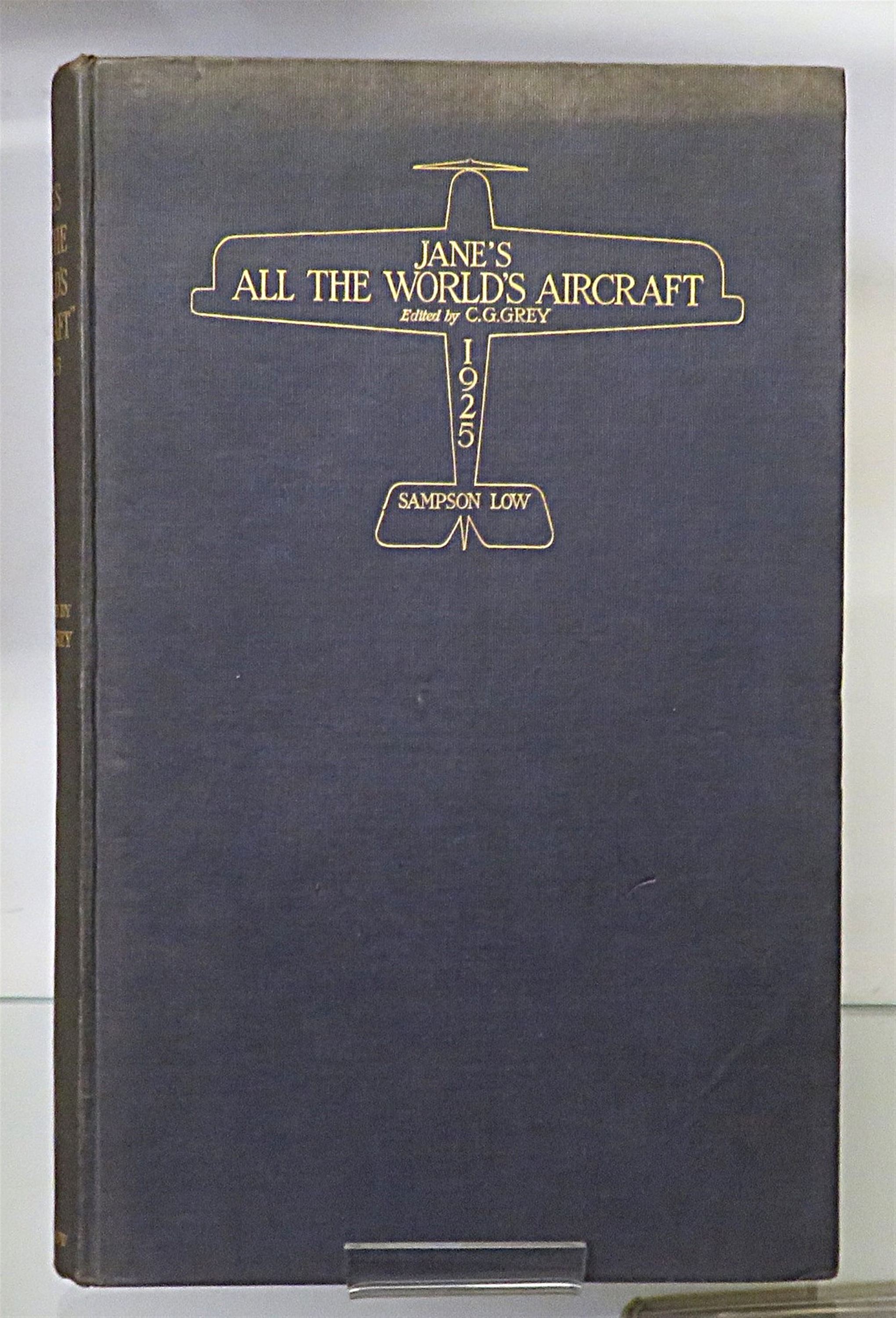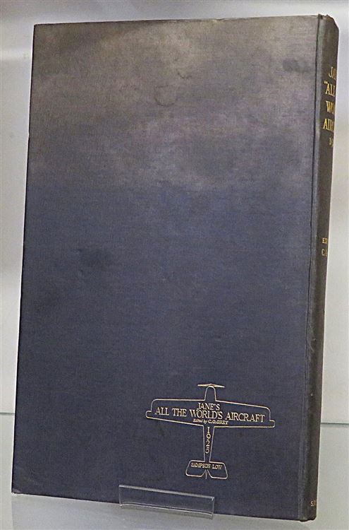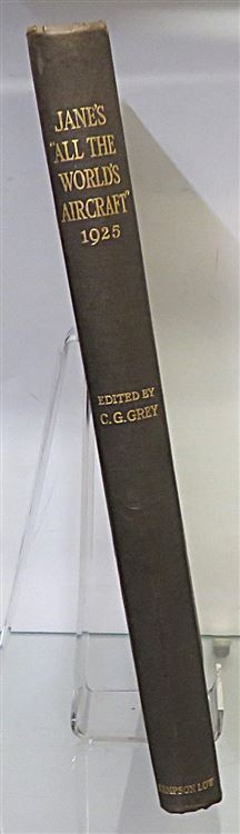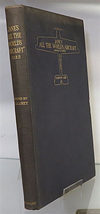 The 1925 Edition of Jane's All The World's Aircraft, a comprehensive aviation yearbook edited by C.G. Grey. It documented the state of global aviation during what is often called The Golden Age of aviation. Handsomely bound in navy cloth with gilt titles to the front and spine. The binding is a little worn with some fading and a slight lean to the spine. However, given its age still presents well. The text block is quite tight and the pages are clean. Profusely illustrated, as expected with a Jane's Annual, with adverts of the time to the front and rear. Overall a good copy of this scarce to find year. A must for any aviation enthusiast.