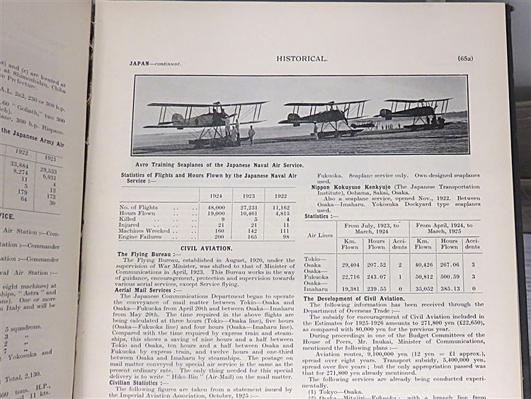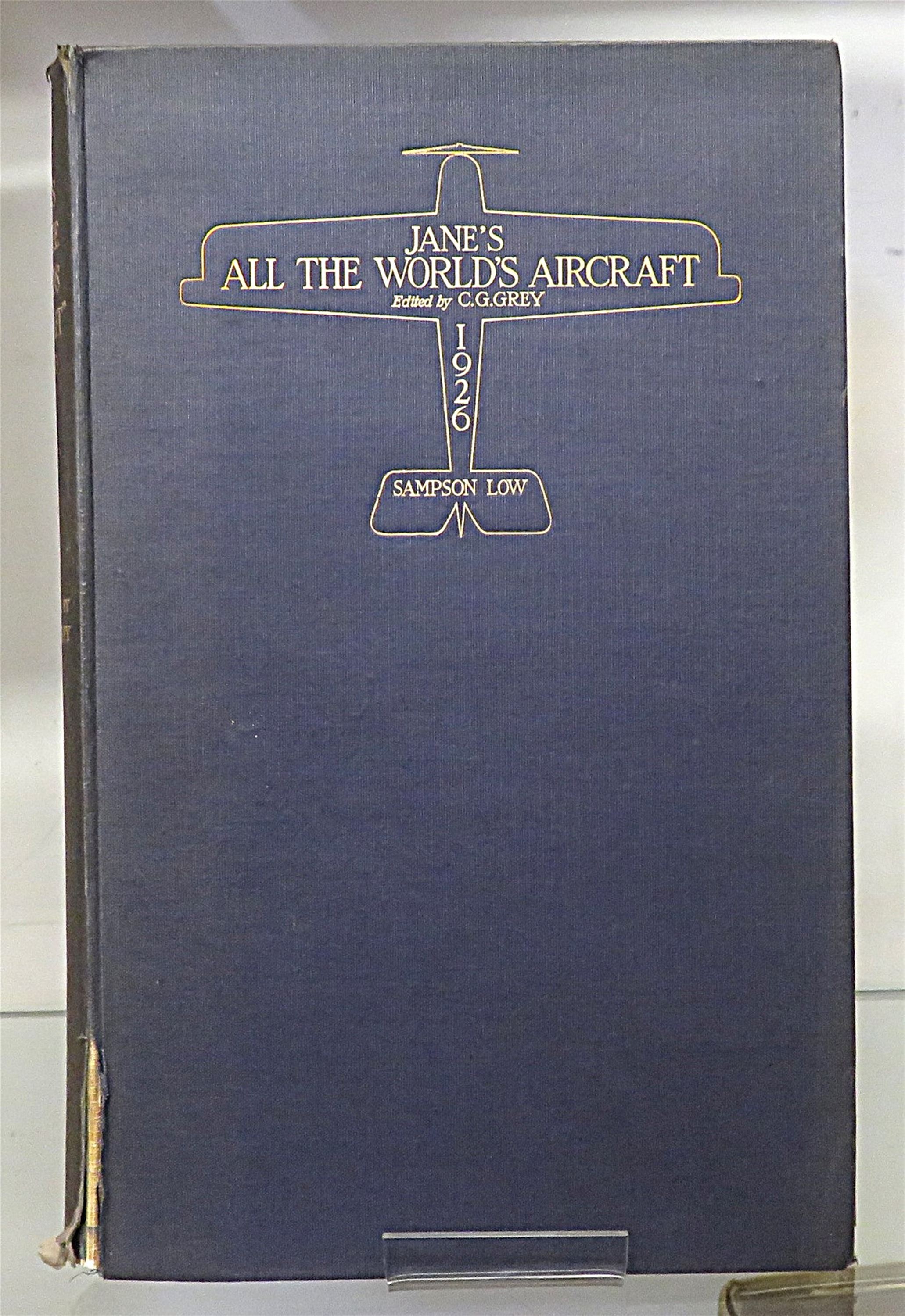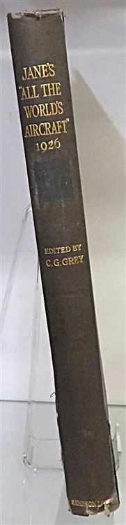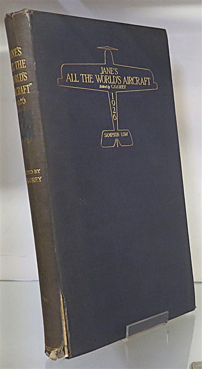 The authoriative aviation annual, this one published in 1926 compiled and edited by C.G. Grey. This volume captures a pivotal year in The Golden Age Of Aviation documenting the shift from wooden biplanes to all-metal designs and the birth of commercial air travel. This copy is handsomely bound in navy cloth with gilt titles to the front and spine. The binding generally is in good condition despite a little edge wear. There is however, a split along the cloth to the base of the spine, both front and rear, and fraying to the top, as well as some fading. The interior is clean as well as profusely illustrated. A scarce edition and a must have addition to any aviation library.