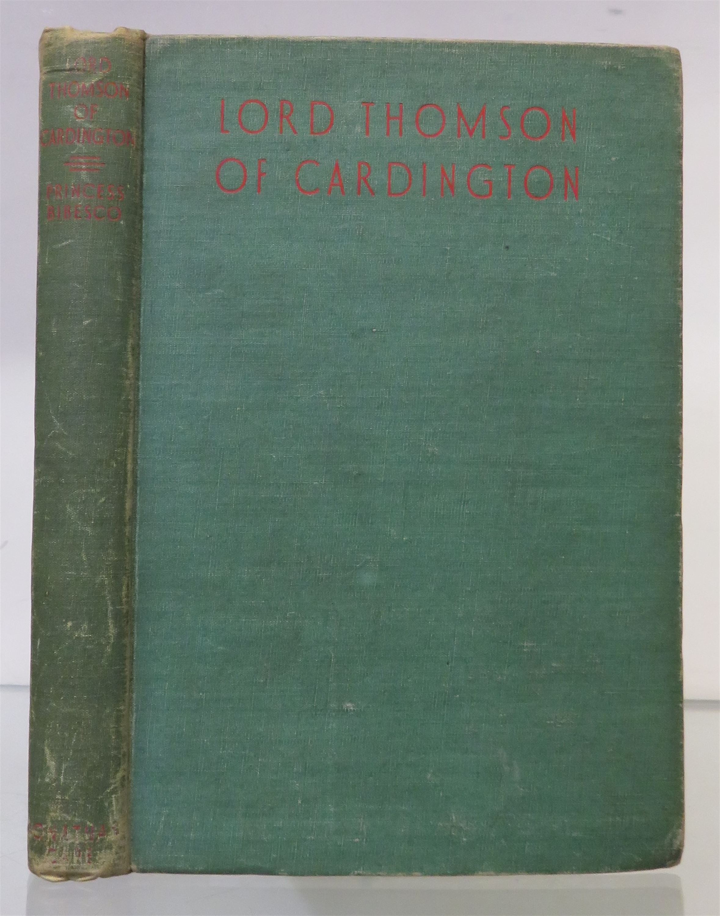 In this book the author tells the story of the life of British Air Minister, Lord Thomas of Cardington, through the form of a memoir and some letters. The author, Princess Marthe Bibisco of Romania, was a close friend of the eponymous figure, whom he met in 1915 and corresponded with regularly throughout his life, and she dedicated four of her other books to 'C.B.T.' This lovely early edition is bound in green cloth with red lettering on the spine and the front cover. This copy has an inscription to the front endpaper written in French, and dated Christmas 1937. It is illustrated with black and white photographs throughout. Overall, the book is in very good condition, with clean and bright pages all throughout. There is some wear to the extremities of the cover. pp. 237. "Lord Thomson of Cardington" forms part of the extensive selection of aviation titles available at St Mary's Books.